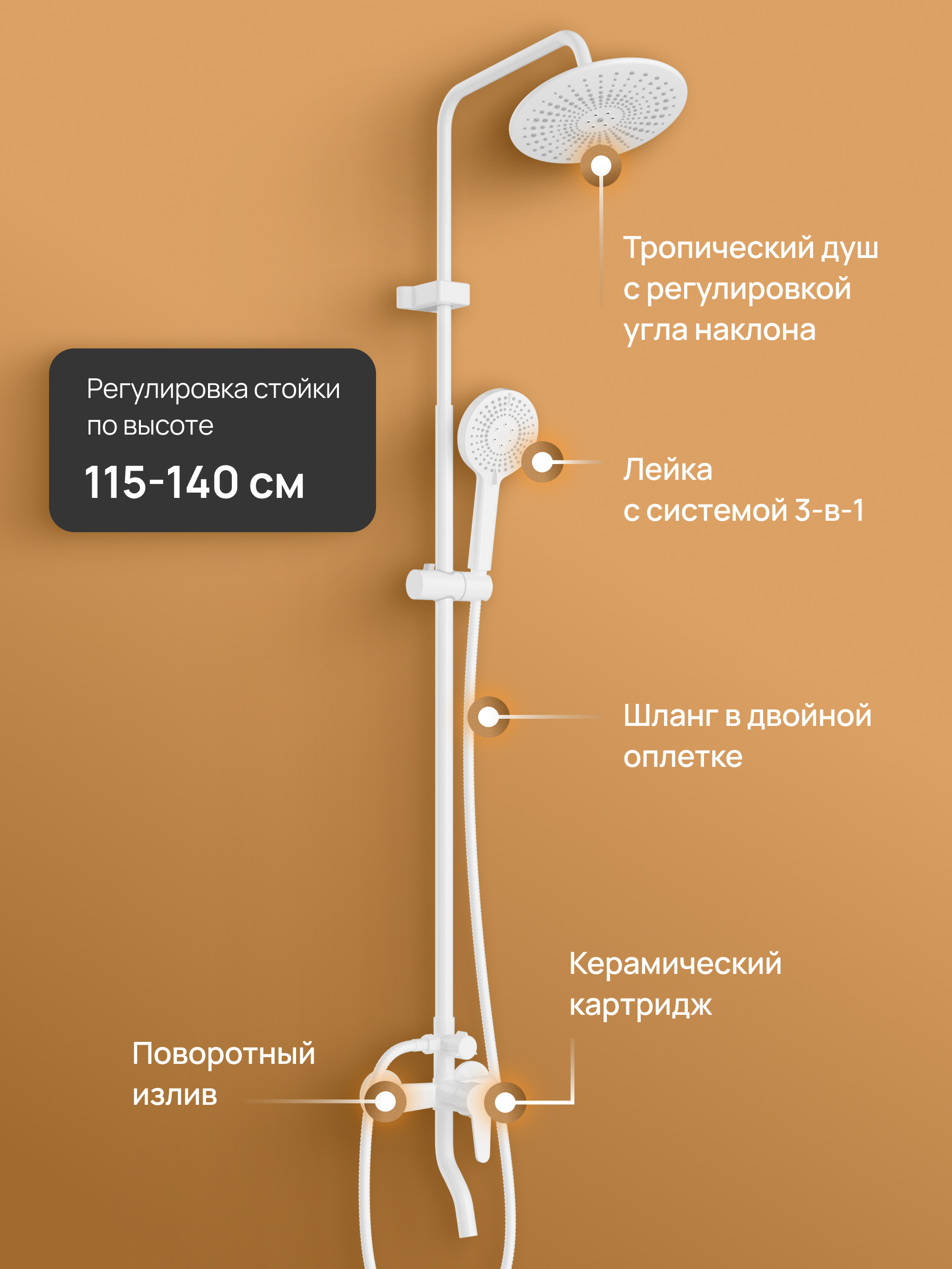 Включает - ручная лейка,верхний душ