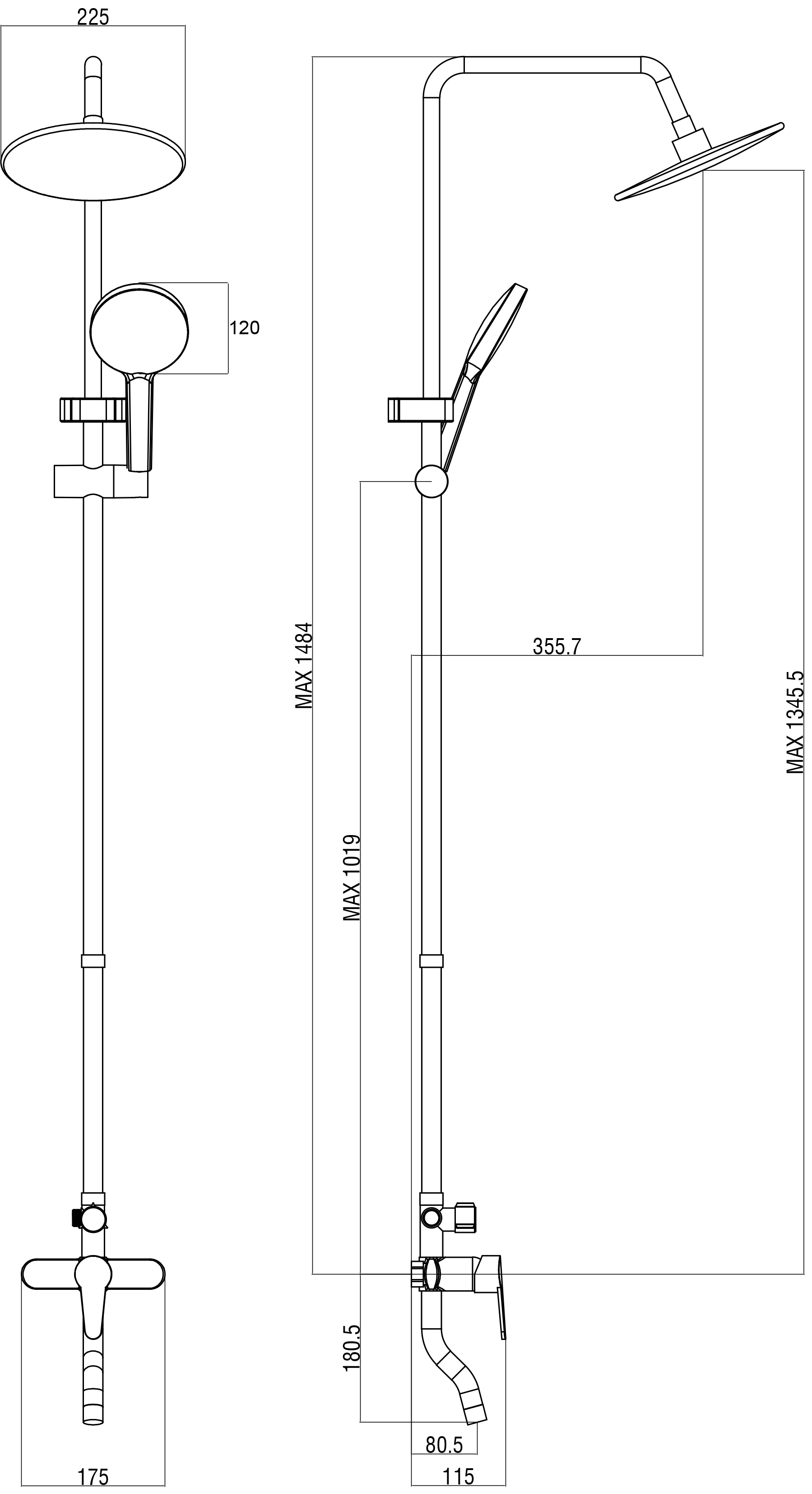 Вылет верхнего душа, см - 35.57