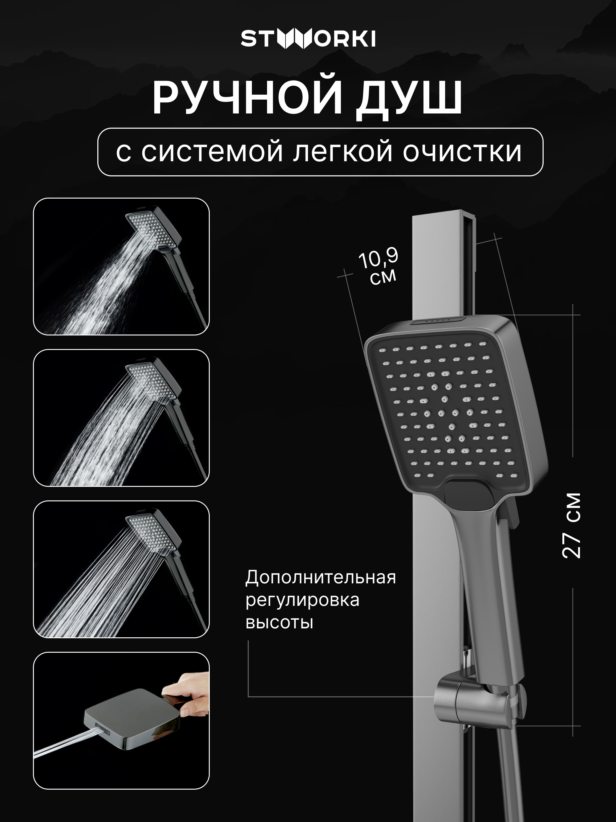 Дополнительное оснащение - душевая штанга,держатель для душа