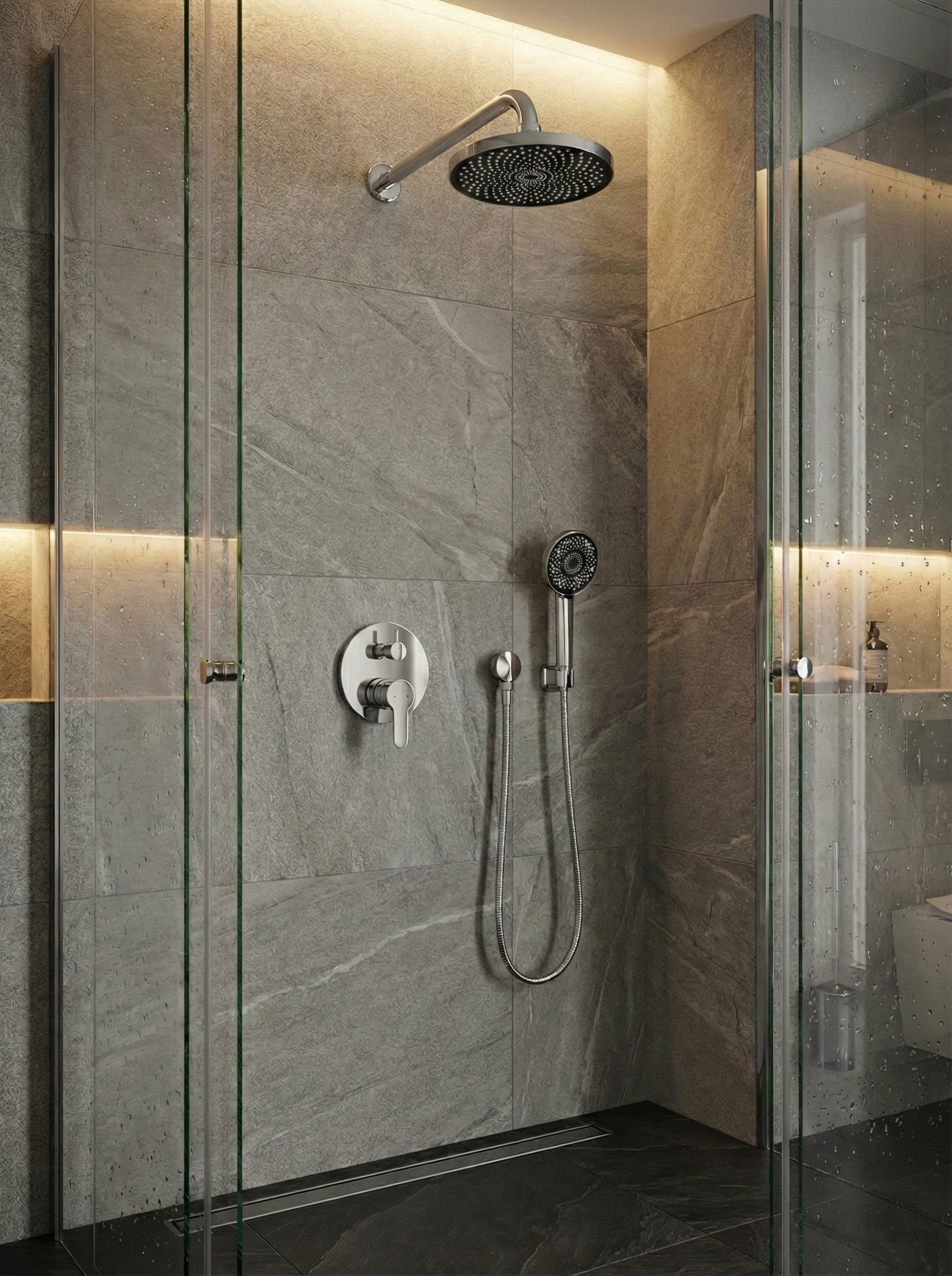 Комплектация - верхний душ, ручной душ
