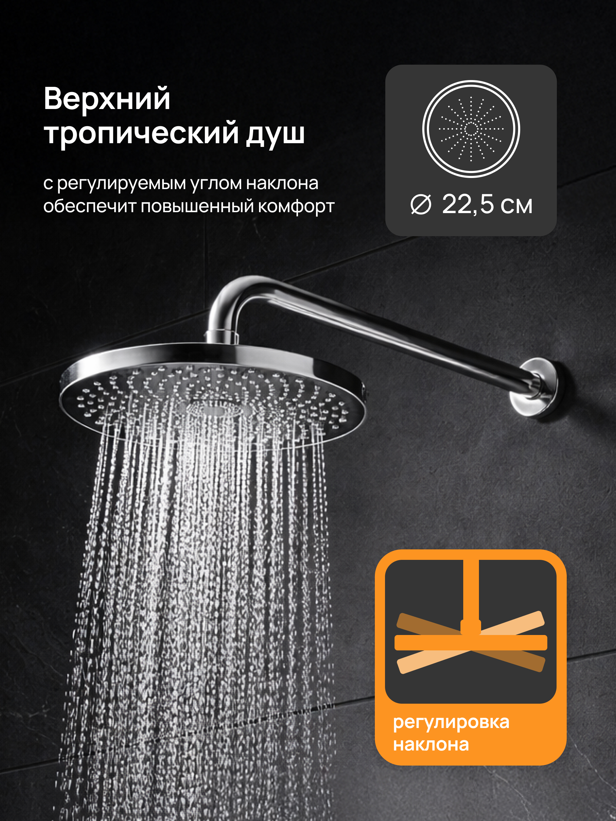 Верхний душ с изменяемым углом - да