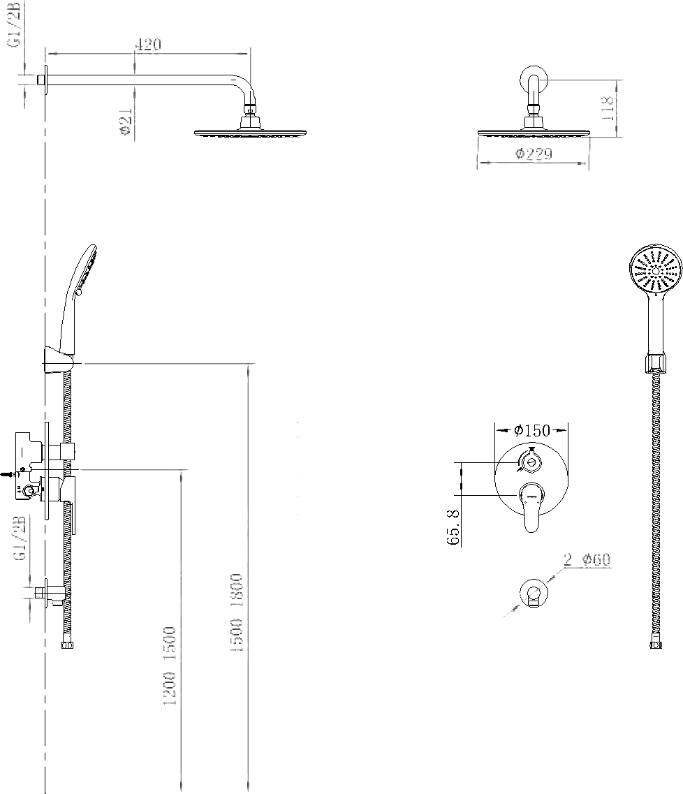 Комплектация - верхний душ, ручной душ