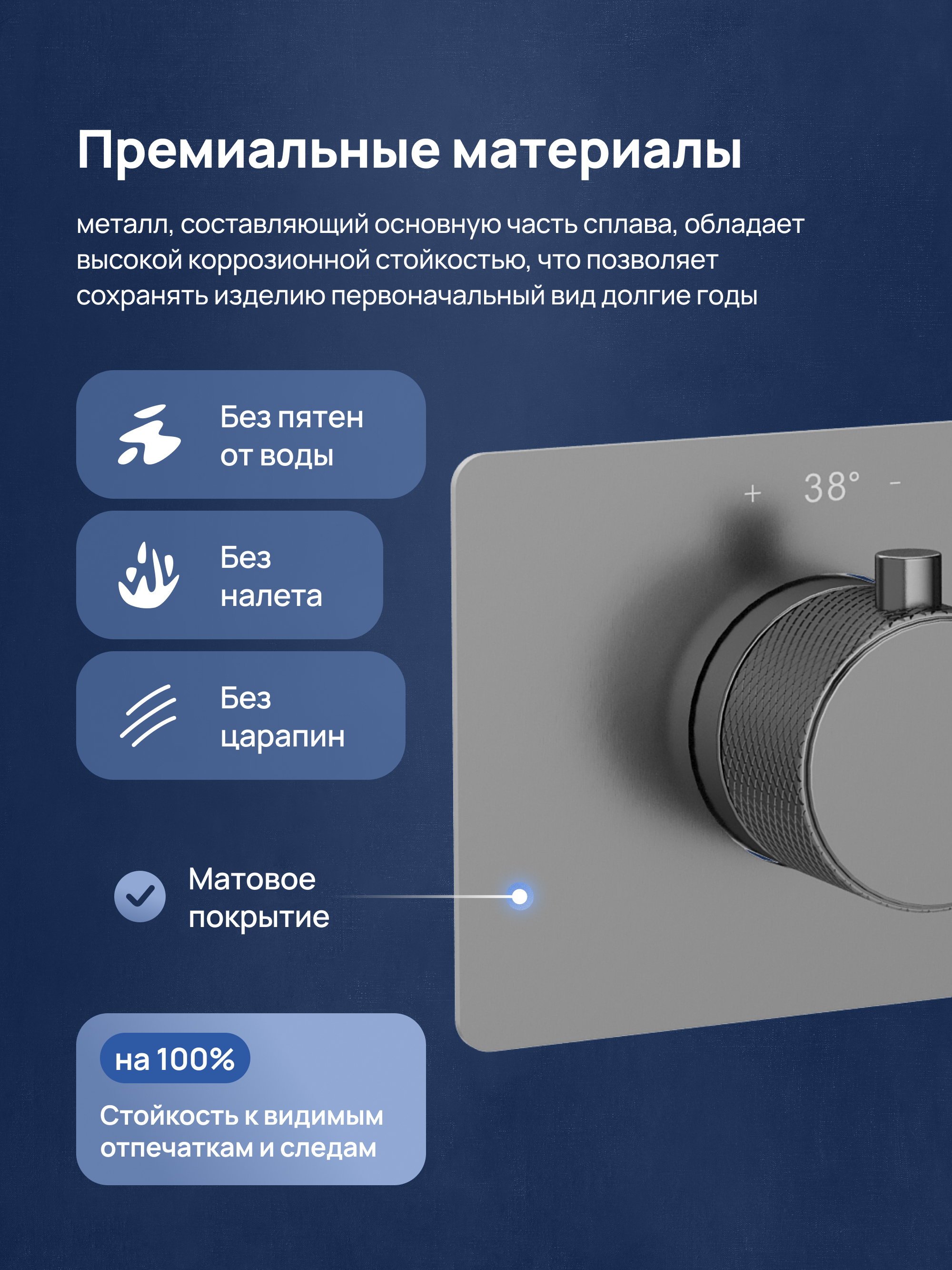 Материал верхнего душа - нержавеющая сталь