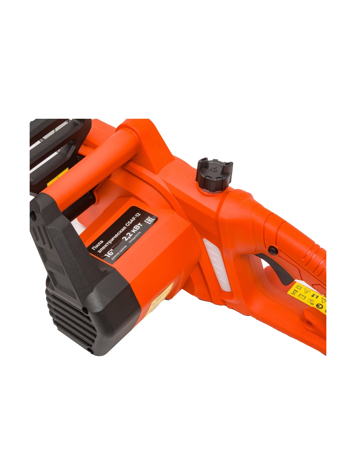 Электрическая пила Gigant 16" 2.2 кВт GSAF-12 используется для спиливания веток, заготовки дров, валки деревьев. В отличие от бензиновых аналогов инструмент не требуется заправлять топливом. Цепная пила функционирует благодаря питанию от электросети переменного тока 220 В. За счёт отсутствия выхлопов и пониженного уровня шума 64 дБ она может использоваться для распиловочных работ в помещении. Регулировка натяжения цепи без ключа с помощью винта, расположенного на корпусе. Быстрая замена щеток двигателя при необходимости. Автоматическая смазка цепи обеспечивает комфортное использование техники при любых работах. Уровень смазки в бачке легко контролировать через смотровое окно. Благодаря эргономичной задней ручке с пусковым механизмом электропила надёжно держится в руке, а антивибрационная система способствует длительной работе. Цепная пила оснащена блокировкой от случайного включения. Специальный фиксатор препятствует выдергиванию штекера из розетки. Автоматический тормоз цепи защищает руки оператора.