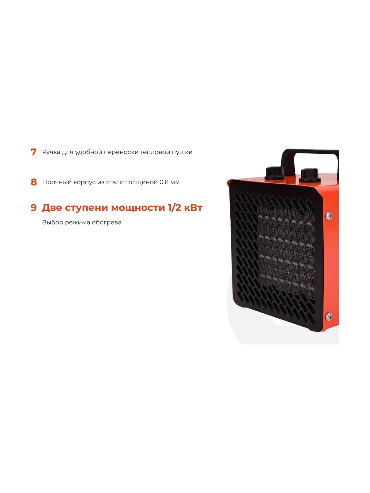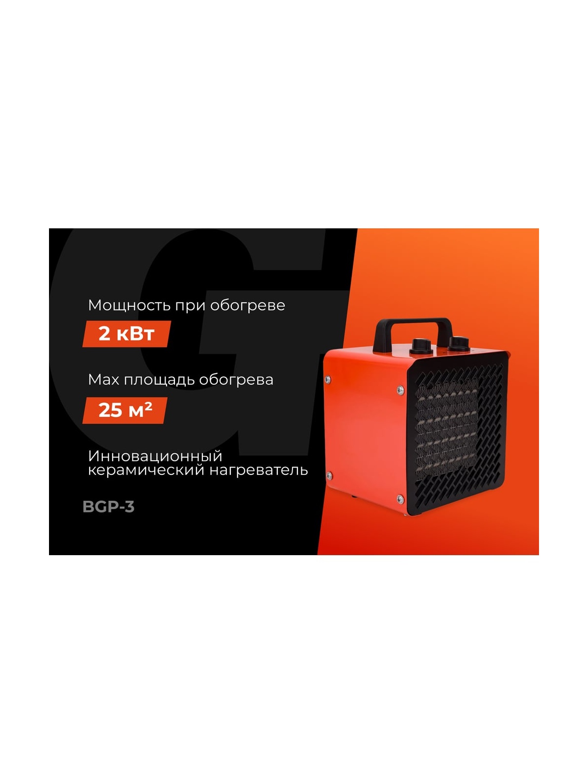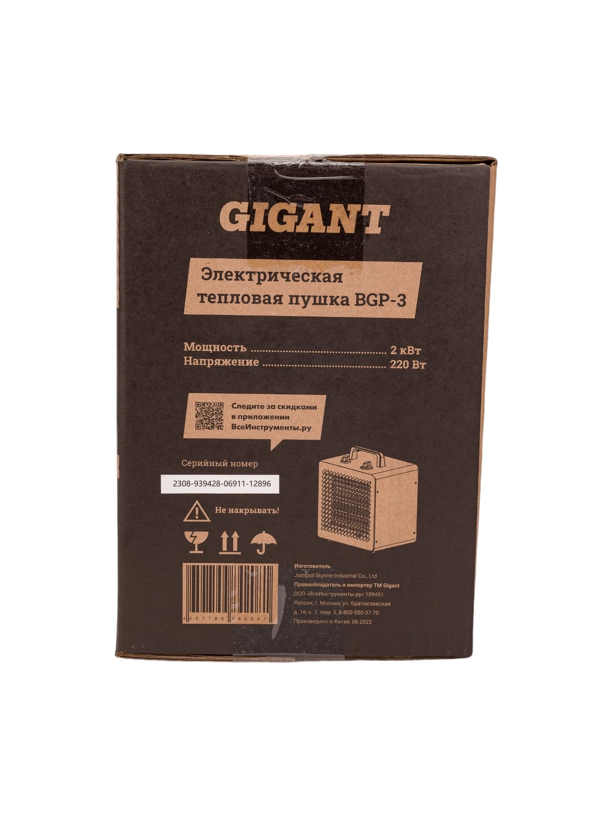 Электрическая тепловая пушка 2 кВт Gigant BGP-3 - надежное отопление и комфорт в одном устройстве! Удобство и многофункциональность Gigant BGP-3 имеет два режима нагрева (1/2 кВт) и режим вентиляции без обогрева. Это устройство спроектировано для использования как в жилых, так и в нежилых помещениях, обеспечивая комфорт в любой обстановке. Переноска стала проще благодаря специальной ручке на корпусе, которая позволяет легко перемещать тепловую пушку из комнаты в комнату. Терморегулятор регулирует температуру подаваемого воздуха. Автоматического включения и отключения пушки в зависимости от температуры окружающей среды не предусмотрено. Безопасность на первом месте Предусмотрен термостат для защиты от перегрева, что делает использование тепловой пушки более надежным. Керамический нагревательный элемент не только обеспечивает быстрый и комфортный обогрев, но и гарантирует экономичное потребление электроэнергии, а также не сжигает кислород и не распространяет неприятные запахи. Продуманный дизайн Gigant BGP-3 имеет прочный корпус из стального листа, который обеспечивает долгий срок службы устройства. Упругие опорные ножки снижают вибрации и шум, что делает работу практически бесшумной. Защитный силиконовый колпачок на кнопке переключения режимов работы и влагозащищенный переключатель режимов работы делают использование тепловой пушки ещё более удобным и безопасным.