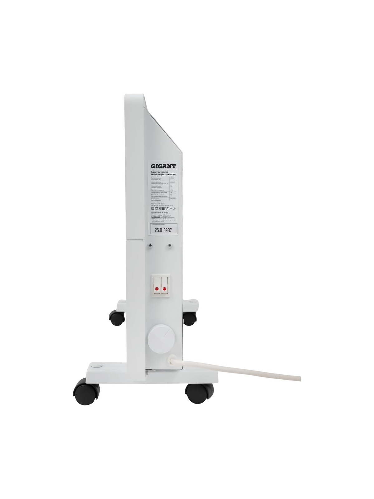 Электрический конвектор 1500 Вт Gigant GCEX-1,5 MT равномерно нагревает и ионизирует воздух в помещениях офисного и бытового назначения. Монолитный нагревательный элемент X-образной формы увеличивает температуру воздуха всего за 75 секунд. Многоуровневая система защиты: влагозащита IP24, родительский контроль, датчик защиты от опрокидывания и перегрева обеспечивают безопасную эксплуатацию прибора.