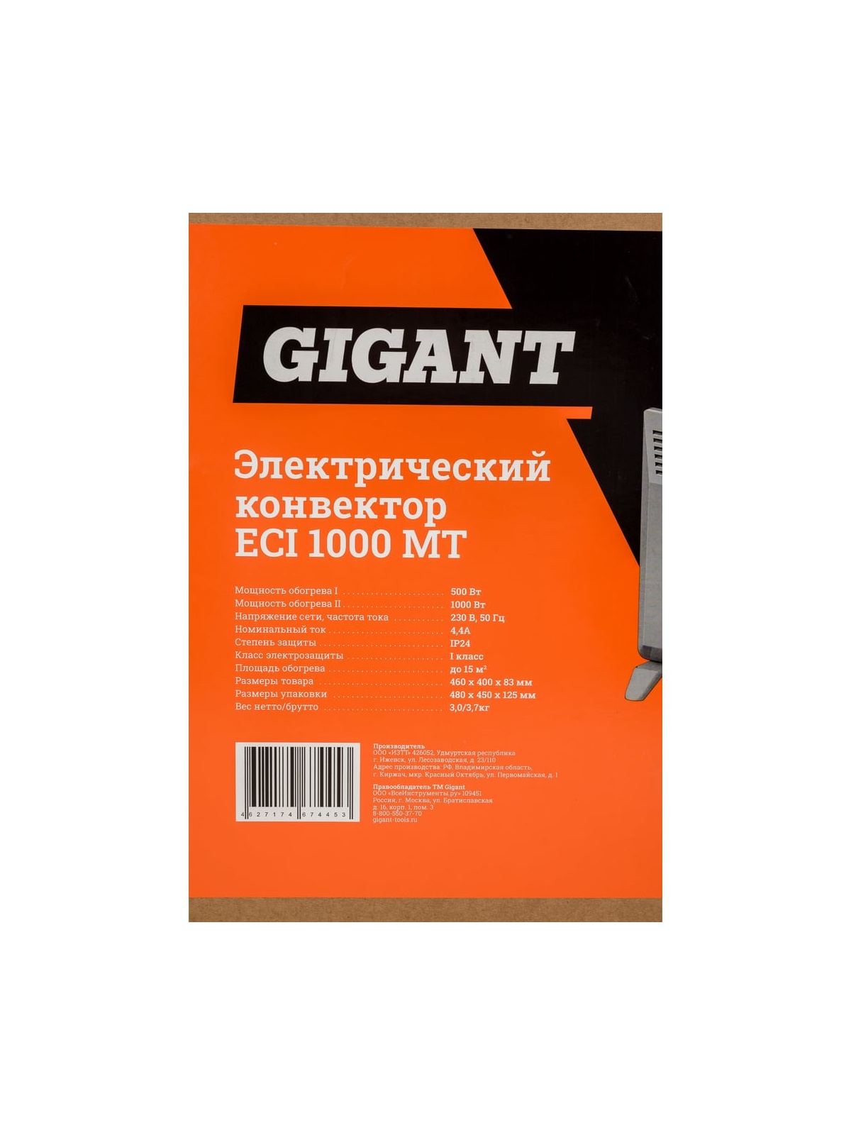 Электрический конвектор Gigant ECI 1000 MT является высокоэффективным электроприбором, используемым для обогрева помещений при помощи Double G Force – бесшумного монолитного нагревательного элемента нового поколения (на 20% компактнее и эффективнее стандартных нагревательных элементов), который позволяет быстро и эффективно обогреть помещение. Конвектор устанавливается на пол благодаря ножкам, которые входят в комплект. Используется в помещениях бытового или офисного назначения в качестве вспомогательного источника тепла. Рекомендуемая площадь обогрева составляет 15 кв.м. Срок эксплуатации до 25 лет. Предусмотрена защита от перегрева и опрокидывания, а значит, снижен риск возникновения пожара. Инновационная система равномерной конвекции Homogeneous flow. Воздухозаборник увеличенной площади Intake. Длина провода 1,2 м. Продукция представлена профессиональными и бытовыми инструментами, имеет доступную цену и высокое качество. При изготовлении товаров Gigant используется современное оборудование и прочные материалы. Производство осуществляется на современных предприятиях России и Азии. Тестирование товаров осуществляется в два этапа, каждая партия инструментов проходит проверку на соответствие стандартам и заявленным техническим характеристикам. Это является залогом качества и надежности готового продукта. Продукция представлена широкой линейкой инструментов. У нас можно приобрести ручной инструмент, строительный, садовый, сантехнический, климатический, крепежный, автогаражный, а также станки, расходные материалы и многое другое.