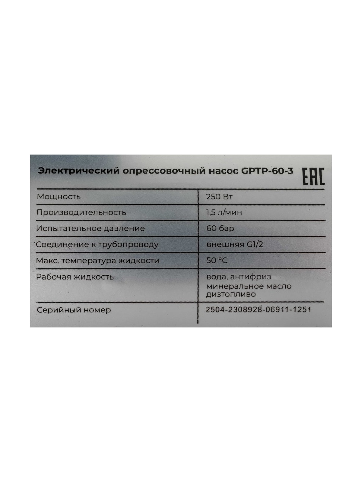 Электрический опрессовочный насос Gigant 60 бар 250 Вт 3 л/мин GPTP-60-3 используется для проверки герметичности магистралей, трубопроводов, систем пожаротушения и отопления, а также технологического оборудования. Идеально подойдет для добавления рабочей жидкости в закрытые контуры. Укомплектован семнадцати литровым пластиковым резервуаром, который устойчив к воздействию различных жидкостей. Манометр со шкалой от 0 до 60 бар позволяет контролировать уровень создаваемого давления. Фильтр грубой очистки обеспечивает защиту насоса от взвеси и крупных частиц.