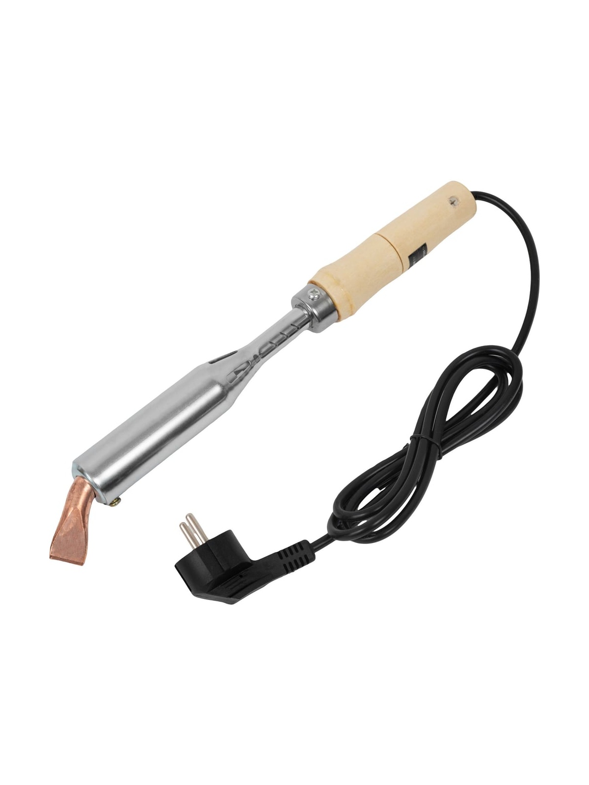 Электрический паяльник Gigant 200Вт GES-06 — это мощный электрический паяльник с клиновидным жалом, оптимально подходящий для пайки, электромонтажных работ, ремонта оборудования и выполнения сложных столярных задач. Модель отличается повышенной надежностью, эффективностью и продуманной эргономикой благодаря традиционной деревянной рукоятке. Ключевые особенности: Мощность 200Вт — обеспечивает быстрый и равномерный нагрев. Клиновидное жало из меди — съемное, отличается отличной теплопроводностью и простотой обслуживания. Толстостенный стальной корпус с гальваническим покрытием — устойчив к коррозии, механическим повреждениям и перегреву. Эргономичная деревянная рукоятка — не нагревается во время работы, удобно ложится в руку, предотвращая скольжение и усталость. Надежный нагревательный элемент — слюдяно-нихромовый, устойчив к износу. Технические характеристики: Напряжение: 220–240В, 50Гц. Максимальная температура нагрева: 520 °C. Время прогрева: 10 минут. Жало: клиновидное, съемное, медное, ширина 19,5 мм, диаметр 15 мм. Общая длина: 365 мм. Длина кабеля: 1,42 мм. Вес: 510 г.