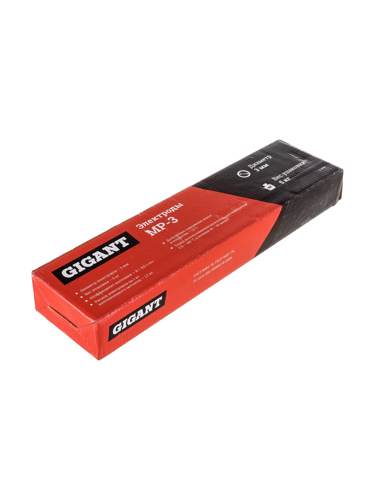 Электроды МР-3 Gigant G-11048предназначены для ручной дуговой сварки ответственных конструкций из углеродистых сталей с временным сопротивлением до 50 кгс/мм2. Сварка проводится во всех пространственных положениях, кроме вертикального вниз, постоянным током обратной полярности и переменным током от источников питания с напряжением холостого хода (50±5)В.