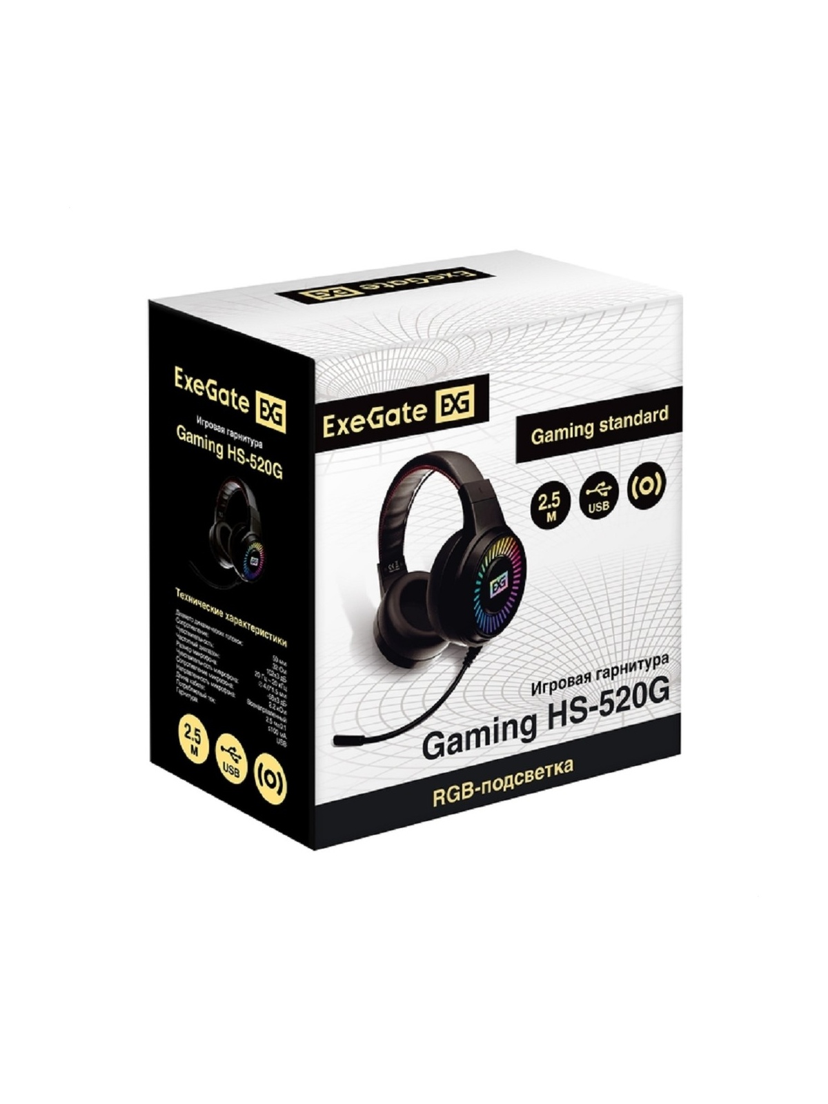 Exegate EX295316RUS Полноразмерные игровые наушники с микрофоном (гарнитура) ExeGate Gaming HS-520G (USB, 2x3.5мм, динамик 40мм, 20-20000Гц, длина кабеля 2.5м, регулировка громкости, RGB подсветка)