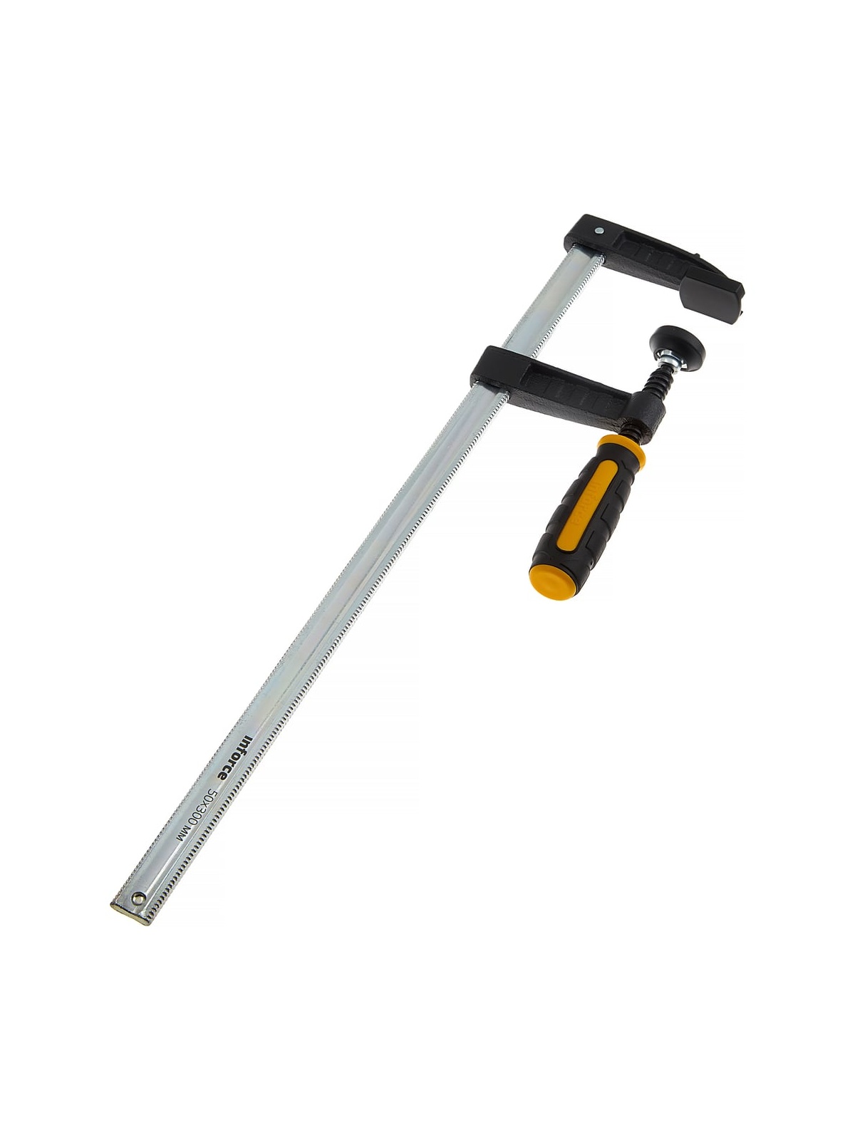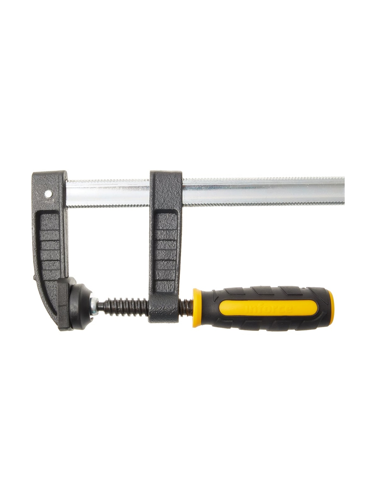 F-образная струбцина 50х300мм Inforce 06-03-28 создана для работы с деревянными деталями. Для лучшего сжатия инструмент дополнен чугунными губками с порошковым покрытием. Инструмент удобен для ладони, не вызывает усталости и существенно упрощает работу техника, слесаря и других специалистов. Сила сжатия до 170 кг обеспечивает надежный захват заготовки.