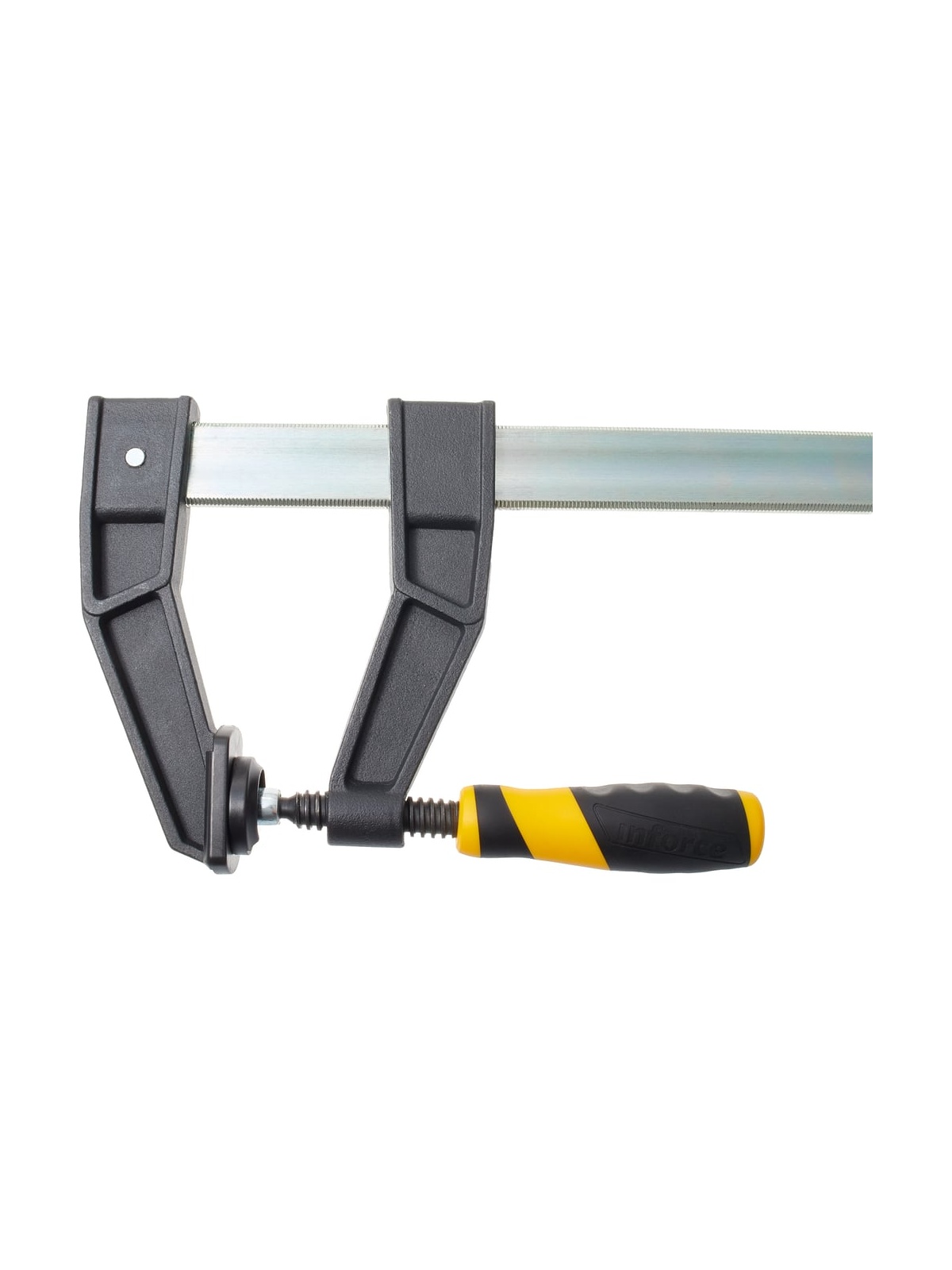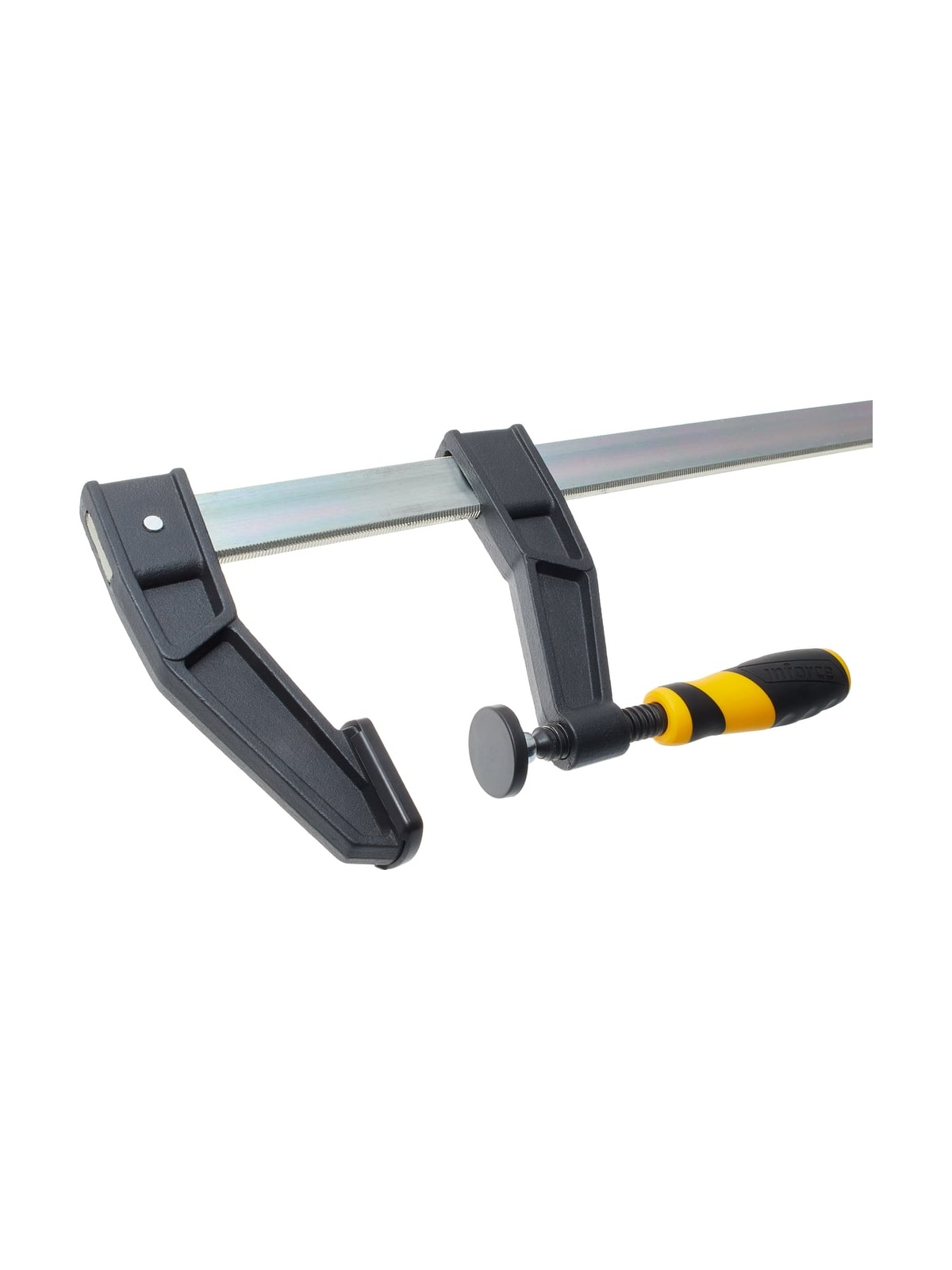 F-образная усиленная струбцина 120х600мм Inforce 06-03-30 представляет собой практичный инструмент с удобной двухкомпонентной рукояткой. Инструмент удобен для ладони, не вызывает усталости и существенно упрощает работу техника, слесаря и других специалистов. Высокая сила сжатия до 700 кг обеспечивает надежный захват заготовки.