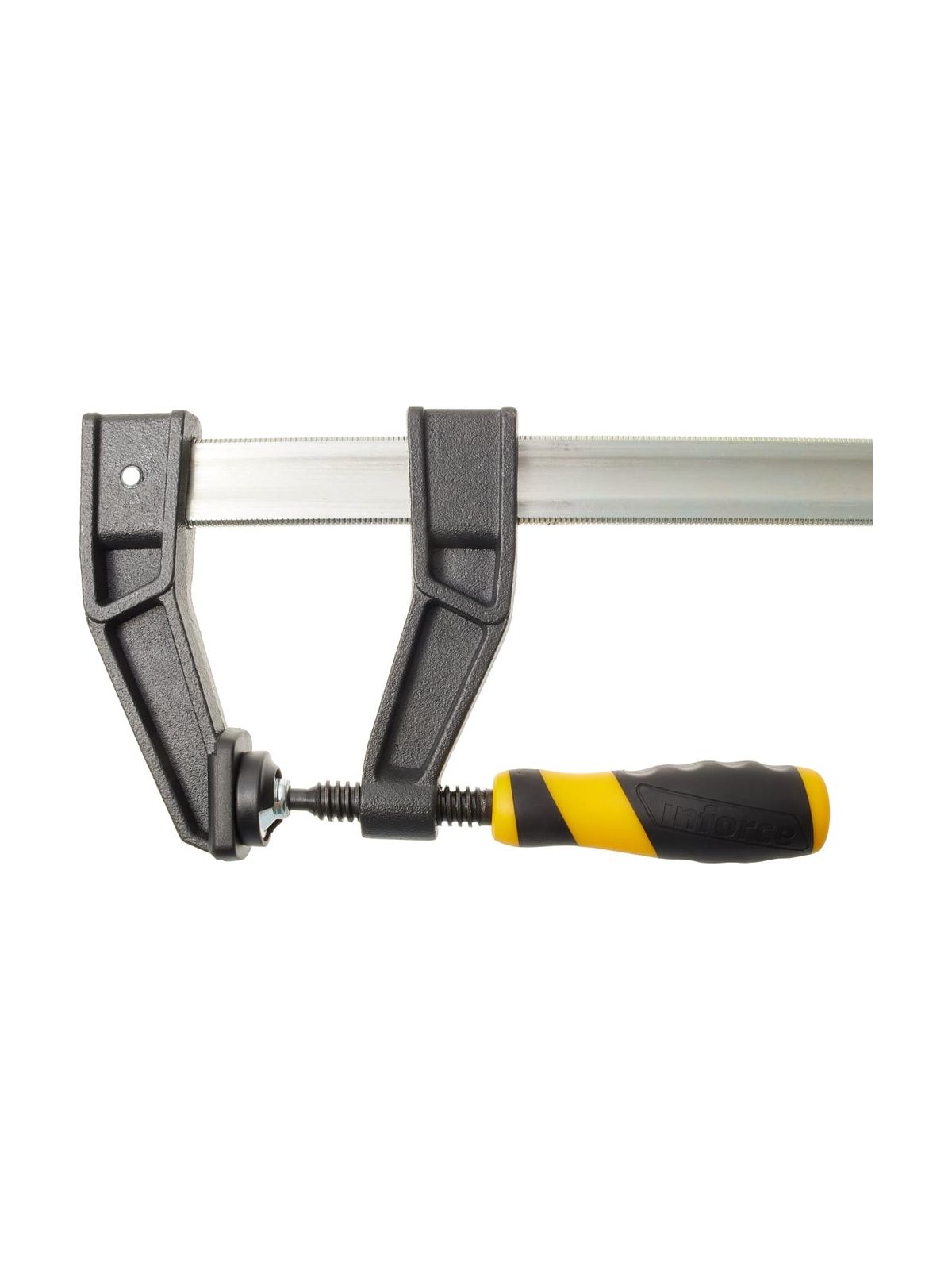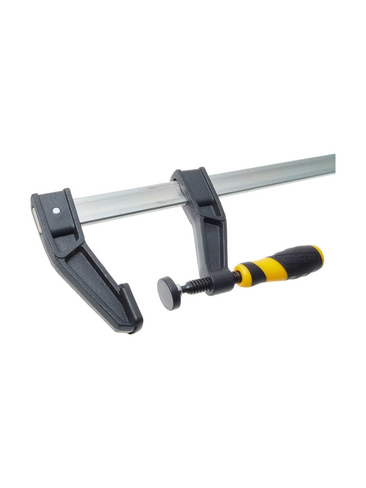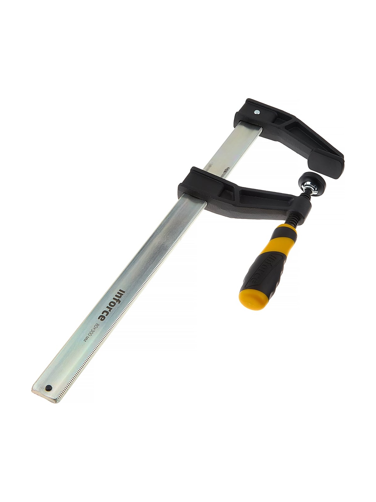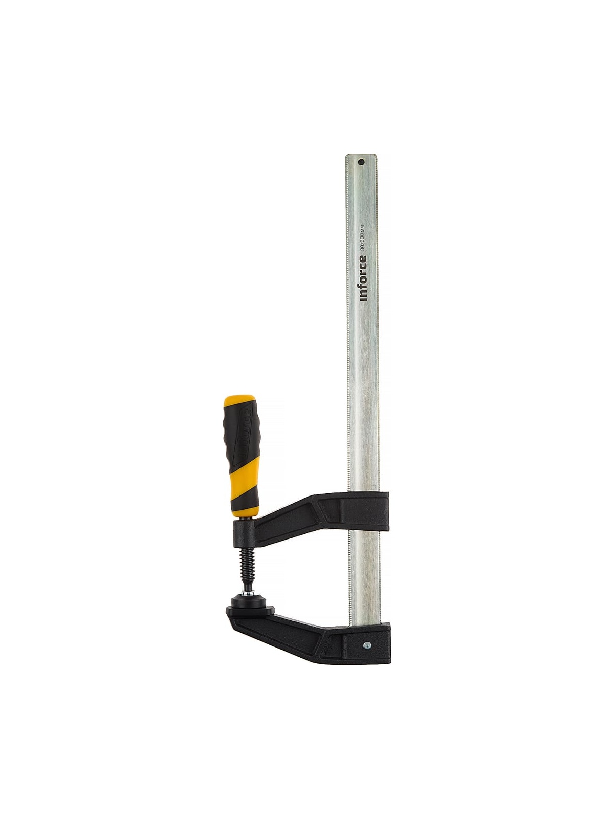 F-образная усиленная струбцина 80х300мм Inforce 06-03-29 дополнена чугунными губками со специальным порошковым покрытием. Инструмент удобен для ладони, не вызывает усталости и существенно упрощает работу техника, слесаря и других специалистов. Высокая сила сжатия до 500 кг обеспечивает надежный захват заготовки.