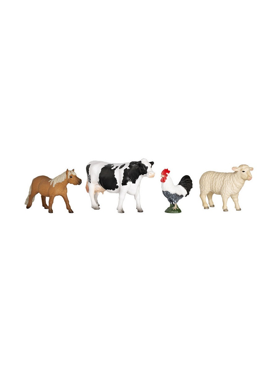 Набор фигурок животных фермы от KONIK: петух, овца, пони, корова. Фигурки животных смогут стать центральными персонажами детских игр и украсить интерьер комнаты. Игрушки предназначены для детей от 3 лет. Развивают мелкую моторику, воображение, фантазию и творческое мышление.
