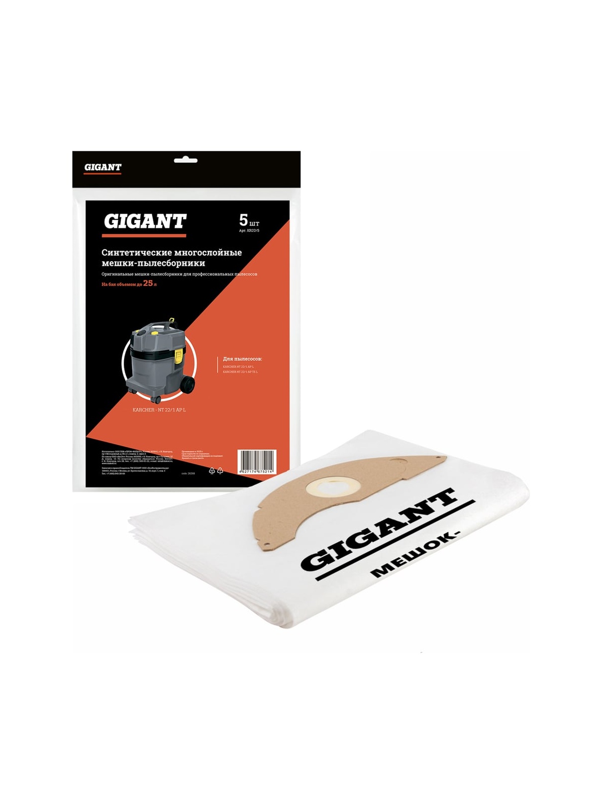 Фильтр-мешки для пылесоса KARCHER NT 22/1 Gigant KR22/5 изготовлены из синтетического материала высокой прочности. Трехслойный нетканый материал устойчив к повреждениям даже при попадании крупного строительного мусора. Предназначен для промышленных и строительных пылесосов: KARCHER NT 22/1 AP L KARCHER NT 22/1 AP TE L Продукция представлена профессиональными и бытовыми инструментами, имеет доступную цену и высокое качество. При изготовлении товаров Gigant используется современное оборудование и прочные материалы. Производство осуществляется на современных предприятиях России и Азии. Тестирование товаров осуществляется в два этапа, каждая партия инструментов проходит проверку на соответствие стандартам и заявленным техническим характеристикам. Это является залогом качества и надежности готового продукта. Продукция представлена широкой линейкой инструментов. У нас можно приобрести ручной инструмент, строительный, садовый, сантехнический, климатический, крепежный, автогаражный, а также станки, расходные материалы и многое другое.
