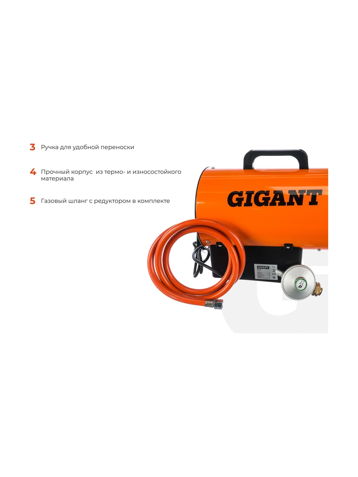 Газовая тепловая пушка Gigant GH10F предназначена для эффективного обогрева хорошо проветриваемых помещений и отличается компактностью при высокой производительности. Это мощное оборудование обеспечивает тепловую мощность на уровне 10 кВт, что является достаточным для обогрева помещения площадью примерно 100 м2. ВНИМАНИЕ! Предельное время работы газовой пушки без перерыва - 8-10 часов. По истечении этого времени необходимо проверить уровень топлива и вентиляцию помещения. Основной принцип работы пушки заключается в подключении к газовому баллону при помощи комплектного шланга длиной 1,5 м и редуктора. Эта система обеспечивает стабильное поступление газа, необходимого для поддержания высокой тепловой производительности. Корпус устройства выполнен из термо- и износостойкого материала, что обеспечивает надежность и долгий срок службы оборудования. Модель Gigant GH10F разработана с учетом простоты использования – она не требует специальной сборки и монтажа. Кнопка включения оборудования оснащена защитой от пыли, что повышает надежность работы устройства и продлевает его срок службы. Кроме того, предусмотрена удобная ручка для перемещения пушки, что обеспечивает мобильность и легкость в управлении обогревом в различных помещениях. Таким образом, газовая тепловая пушка Gigant GH10F представляет собой эффективное и удобное решение для обеспечения тепла в различных пространствах. Кроме своей основной функции обогрева, газовая тепловая пушка Gigant GH10F также проявляет универсальность в использовании, включая возможность применения при монтаже натяжных потолков. Это делает ее идеальным инструментом не только для поддержания комфортной температуры в хорошо проветриваемых помещениях, но и для обеспечения оптимальных условий в процессе установки натяжных потолков. Благодаря компактному дизайну и легкости в управлении, данная модель газовой пушки обеспечивает эффективное распределение тепла, что особенно важно при работе с материалами потолочных конструкций. Возможность регулировки мощности до 10 кВт позволяет точно настраивать температурные условия в соответствии с требованиями монтажа. Корпус устройства выполнен из термо- и износостойкого материала. Модель не требует специальной сборки и монтажа. Кнопка включения имеет защиту от пыли. Предусмотрена ручка для удобного перемещения пушки. Продукция представлена профессиональными и бытовыми инструментами, имеет доступную цену и высокое качество. При изготовлении товаров Gigant используется современное оборудование и прочные материалы. Производство осуществляется на современных предприятиях России и Азии. Тестирование товаров осуществляется в два этапа, каждая партия инструментов проходит проверку на соответствие стандартам и заявленным техническим характеристикам. Это является залогом качества и надежности готового продукта. Продукция представлена широкой линейкой инструментов. У нас можно приобрести ручной инструмент, строительный, садовый, сантехнический, климатический, крепежный, автогаражный, а также станки, расходные материалы и многое другое.