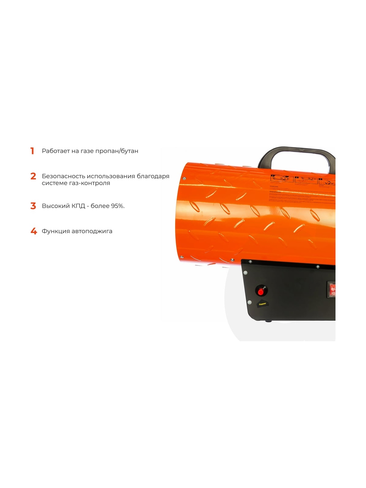 Газовая тепловая пушка Gigant GH30F предназначена для эффективного обогрева хорошо проветриваемых помещений и отличается компактностью при высокой производительности. Это мощное оборудование обеспечивает тепловую мощность на уровне 30 кВт, что является достаточным для обогрева помещения площадью примерно 300 м2. ВНИМАНИЕ! Предельное время работы газовой пушки без перерыва - 8-10 часов. По истечении этого времени необходимо проверить уровень топлива и вентиляцию помещения. Основной принцип работы пушки заключается в подключении к базовому баллону при помощи комплектного шланга длиной 1,5 м и редуктора. Эта система обеспечивает стабильное поступление газа, необходимого для поддержания высокой тепловой производительности. Корпус устройства выполнен из термо- и износостойкого материала, что обеспечивает надежность и долгий срок службы оборудования. Модель Gigant GH30F разработана с учетом простоты использования – она не требует специальной сборки и монтажа. Кнопка включения оборудования оснащена защитой от пыли, что повышает надежность работы устройства и продлевает его срок службы. Кроме того, предусмотрена удобная ручка для перемещения пушки, что обеспечивает мобильность и легкость в управлении обогревом в различных помещениях. Таким образом, газовая тепловая пушка Gigant GH30F представляет собой эффективное и удобное решение для обеспечения тепла в различных пространствах. Кроме своей основной функции обогрева, газовая тепловая пушка Gigant GH30F также проявляет универсальность в использовании, включая возможность применения при монтаже натяжных потолков. Это делает ее идеальным инструментом не только для поддержания комфортной температуры в хорошо проветриваемых помещениях, но и для обеспечения оптимальных условий в процессе установки натяжных потолков. Благодаря компактному дизайну и легкости в управлении, данная модель газовой пушки обеспечивает эффективное распределение тепла, что особенно важно при работе с материалами потолочных конструкций. Возможность регулировки мощности до 30 кВт позволяет точно настраивать температурные условия в соответствии с требованиями монтажа. Корпус устройства выполнен из термо- и износостойкого материала. Модель не требует специальной сборки и монтажа. Кнопка включения имеет защиту от пыли. Предусмотрена ручка для удобного перемещения пушки. Продукция представлена профессиональными и бытовыми инструментами, имеет доступную цену и высокое качество. При изготовлении товаров Gigant используется современное оборудование и прочные материалы. Производство осуществляется на современных предприятиях России и Азии. Тестирование товаров осуществляется в два этапа, каждая партия инструментов проходит проверку на соответствие стандартам и заявленным техническим характеристикам. Это является залогом качества и надежности готового продукта. Продукция представлена широкой линейкой инструментов. У нас можно приобрести ручной инструмент, строительный, садовый, сантехнический, климатический, крепежный, автогаражный, а также станки, расходные материалы и многое другое.