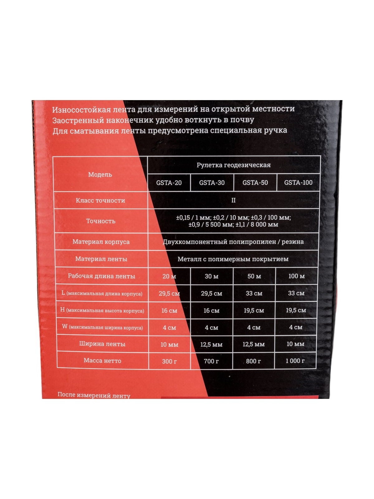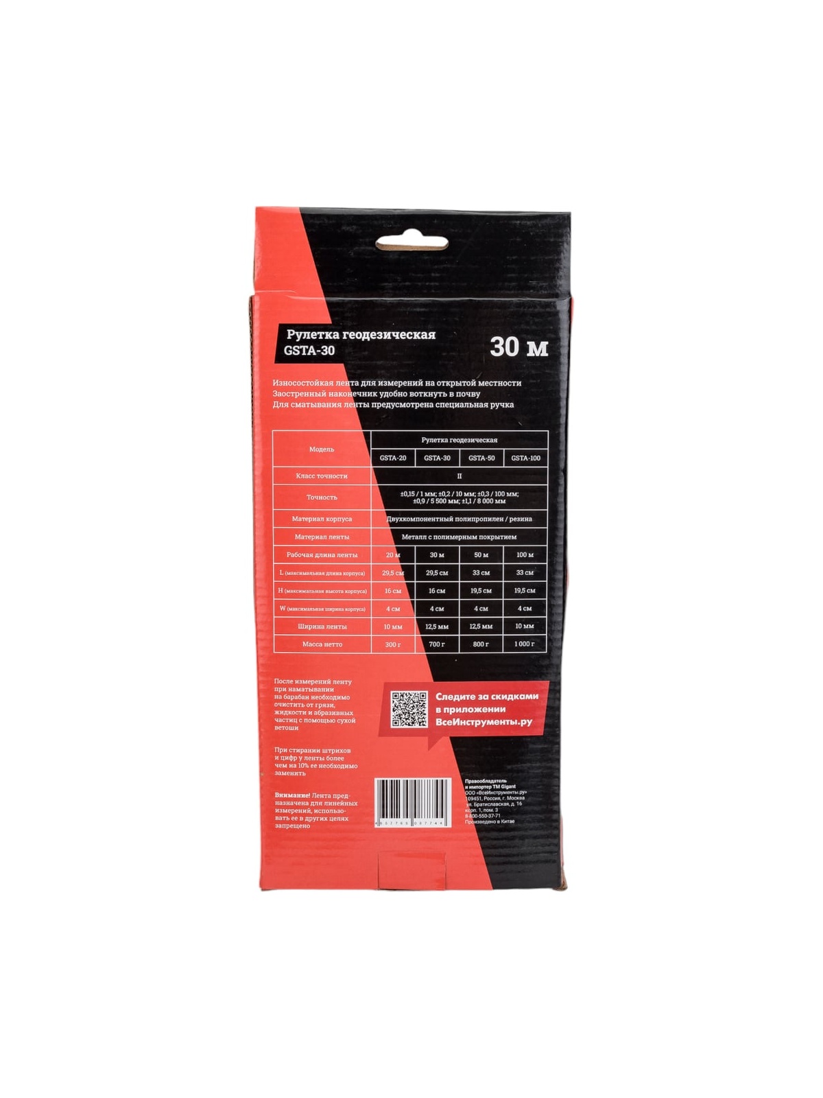 Геодезическая рулетка 30м Gigant GSTA-30 - это износостойкая лента для точных измерений на открытой местности. Имеет заостренный наконечник, который вставляется в почву. Для удобства сматывания ленты предусмотрена специальная ручка. Второй класс точности, цена деления - 1 мм.