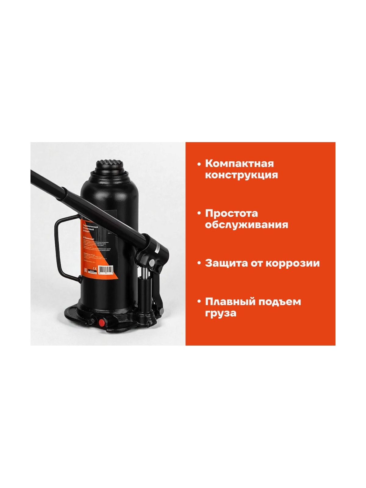 Гидравлический бутылочный домкрат 12Т Gigant HBJ-12 разработан для подъема на высоту тяжелых грузов. Широкое основание имеет достаточную площадь для равномерного распределения массы груза во избежание повреждения опоры. Специальное покрытие защищает корпус изделия от влияния коррозии в течение всего срока службы. Предохранительный клапан срабатывает при перегрузке и позволяет исключить вероятность поломки. Высота подхвата данного домкрата составляет 230 мм, грузоподъемность - 12 т. Бутылочный домкрат отличается следующими особенностями: Удобный размер - небольшие габариты по сравнению с механическими домкратами при одинаковых возможностях. Легкость в эксплуатации - необходимо минимальное усилие для работы домкрата. Устойчивость - большая площадь опоры и перпендикулярное приложение усилия без смещения в процессе работы. Продукция представлена профессиональными и бытовыми инструментами, имеет доступную цену и высокое качество. При изготовлении товаров Gigant используется современное оборудование и прочные материалы. Производство осуществляется на современных предприятиях России и Азии. Тестирование товаров осуществляется в два этапа, каждая партия инструментов проходит проверку на соответствие стандартам и заявленным техническим характеристикам. Это является залогом качества и надежности готового продукта. Продукция представлена широкой линейкой инструментов. У нас можно приобрести ручной инструмент, строительный, садовый, сантехнический, климатический, крепежный, автогаражный, а также станки, расходные материалы и многое другое.