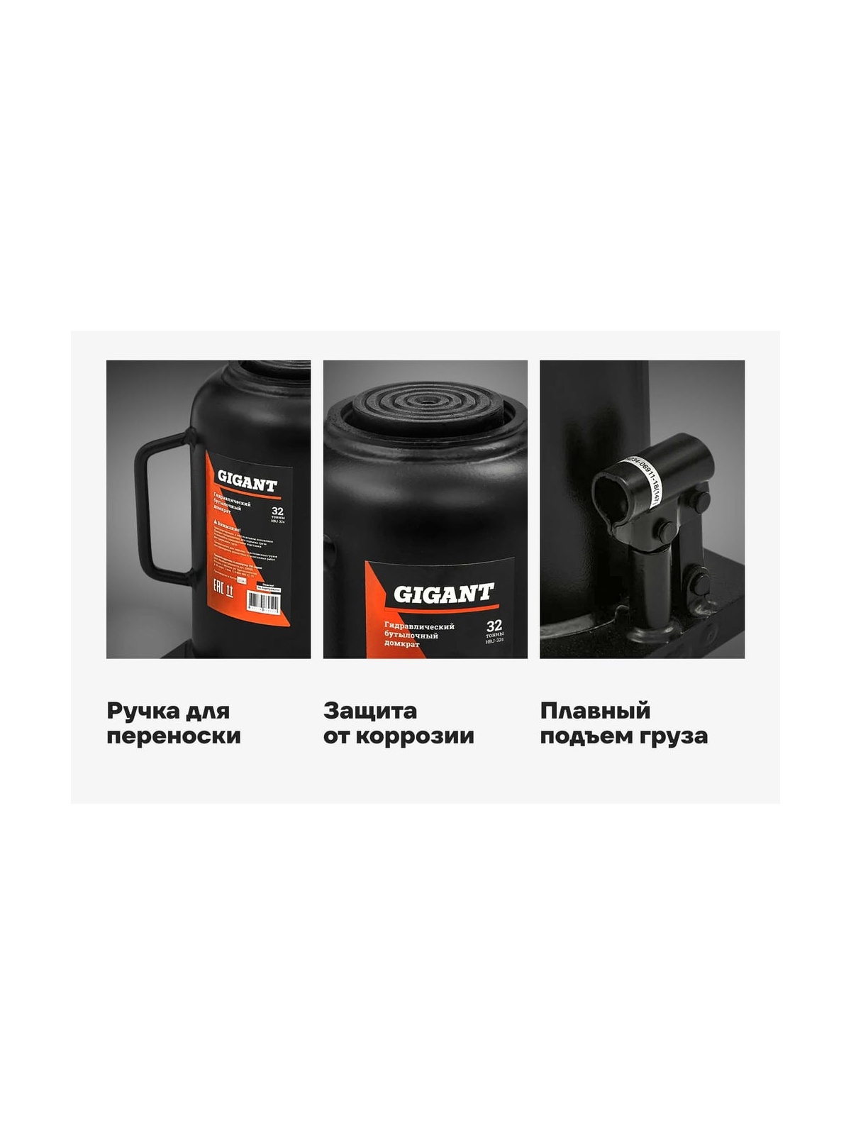 Гидравлический бутылочный домкрат Gigant 32 т HBJ-32s представляет собой устройство для плавного подъема тяжелого груза на высоту 360 мм. Данная модель может использоваться как самостоятельно, так и в качестве части трубогиба или пресса. Домкрат имеет рельефную опорную поверхность, что препятствует соскальзыванию груза во время подъёма. Высота подхвата данного домкрата составляет 230 мм, грузоподъемность - 32 т. Бутылочный домкрат отличается следующими особенностями: Удобный размер - небольшие габариты по сравнению с механическими домкратами при одинаковых возможностях. Легкость в эксплуатации - необходимо минимальное усилие для работы домкрата. Устойчивость - большая площадь опоры и перпендикулярное приложение усилия без смещения в процессе работы. Продукция представлена профессиональными и бытовыми инструментами, имеет доступную цену и высокое качество. При изготовлении товаров Gigant используется современное оборудование и прочные материалы. Производство осуществляется на современных предприятиях России и Азии. Тестирование товаров осуществляется в два этапа, каждая партия инструментов проходит проверку на соответствие стандартам и заявленным техническим характеристикам. Это является залогом качества и надежности готового продукта. Продукция представлена широкой линейкой инструментов. У нас можно приобрести ручной инструмент, строительный, садовый, сантехнический, климатический, крепежный, автогаражный, а также станки, расходные материалы и многое другое.