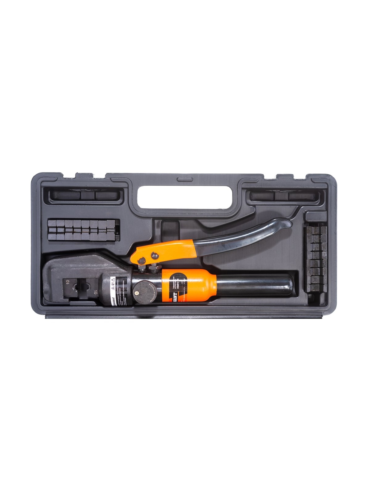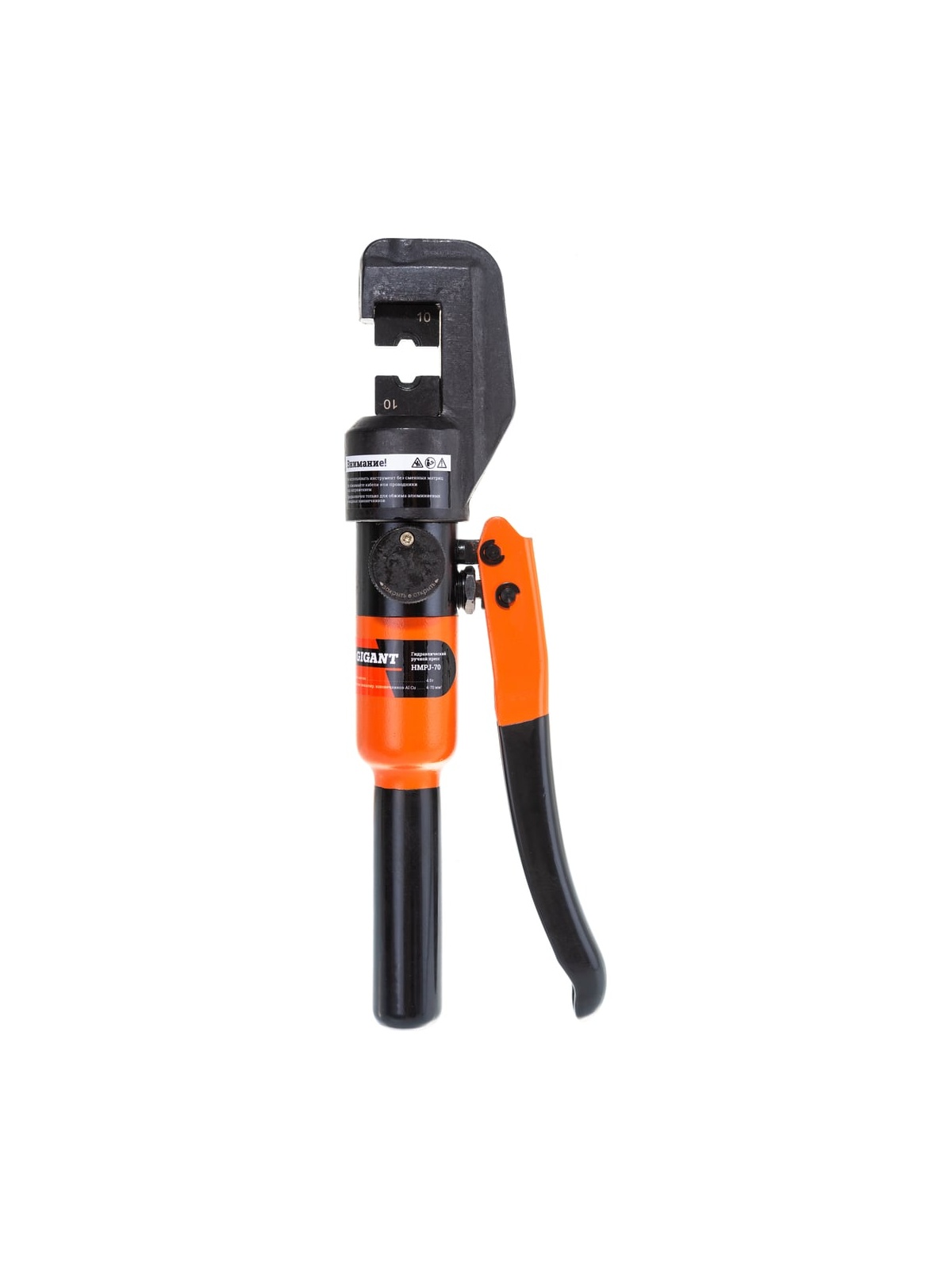 Гидравлический ручной пресс Gigant HMPJ-70 предназначен для опрессовывания силовых медных, алюминиевых и алюмомедных наконечников и гильз на провод и кабель с медными и алюминиевыми жилами. Рабочая часть пресса имеет высокий запас прочности - полностью выполнена из закаленного металла. Сменные матрицы устанавливаются в посадочные отверстия в верхней части рабочей головы и штоке. Матрицы в комплекте инструмента позволяют использовать их к арматуре распространенных стандартов: ГОСТ, DIN и др. Количество матриц - 9 (4,6,8,10,16,25,35,50,70 мм.кв.). Профиль обжима - гексагональный. Диапазон рабочих температур -15 +40 С.