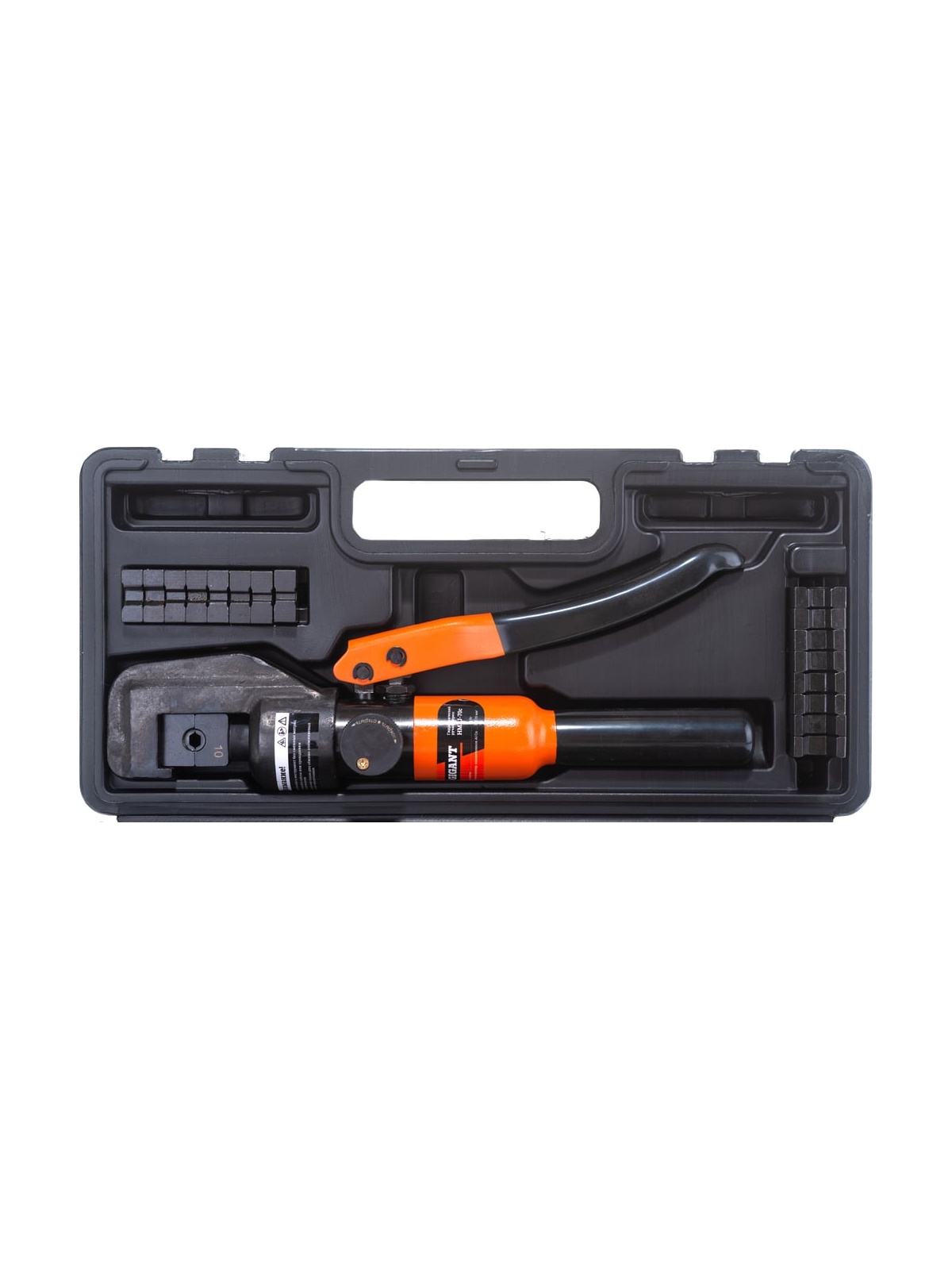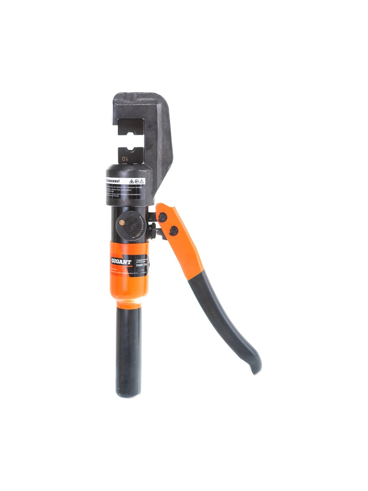 Гидравлический ручной пресс Gigant HMPJ-70с предназначен для опрессовывания силовых медных, алюминиевых и алюмомедных наконечников и гильз на провод и кабель с медными и алюминиевыми жилами. Рабочая часть пресса имеет высокий запас прочности - полностью выполнена из закаленного металла. Сменные матрицы устанавливаются в посадочные отверстия в верхней части рабочей головы и штоке. Матрицы в комплекте инструмента позволяют использовать их к арматуре распространенных стандартов: ГОСТ, DIN и др. Количество матриц - 9 (4,6,8,10,16,25,35,50,70 мм.кв.). Профиль обжима - гексагональный. Диапазон рабочих температур -15 +40 С. Инструмент оснащен функцией автоматического сброса давления.