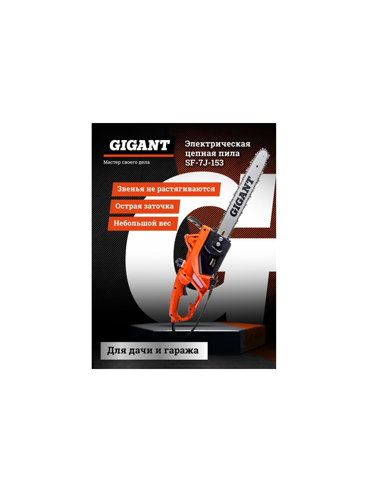 Электрическая цепная пила Gigant - легкий инструмент для распиливания древесины, относится к бытовому классу. Оснащена электроприводом мощностью 1800 Вт. В комплект входит 40-сантиметровая шина и цепь с шагом 3/8. Скорость вращения цепи 12 м/с обеспечивает хорошую производительность. Предусмотрен тормоз цепи для безопасной работы с инструментом. Электропила подойдет для распиловки бревен, валки садовых деревьев, обрезки сучков и т.д. Имеет заднюю рукоятку, которая удобно сидит в руке, что гарантирует надежное удержание инструмента. Отсутствие токсичных выхлопов позволяет использовать пилу в закрытом помещении. Продукция представлена профессиональными и бытовыми инструментами, имеет доступную цену и высокое качество. При изготовлении товаров Gigant используется современное оборудование и прочные материалы. Производство осуществляется на современных предприятиях России и Азии. Тестирование товаров осуществляется в два этапа, каждая партия инструментов проходит проверку на соответствие стандартам и заявленным техническим характеристикам. Это является залогом качества и надежности готового продукта. Продукция представлена широкой линейкой инструментов. У нас можно приобрести ручной инструмент, строительный, садовый, сантехнический, климатический, крепежный, автогаражный, а также станки, расходные материалы и многое другое.