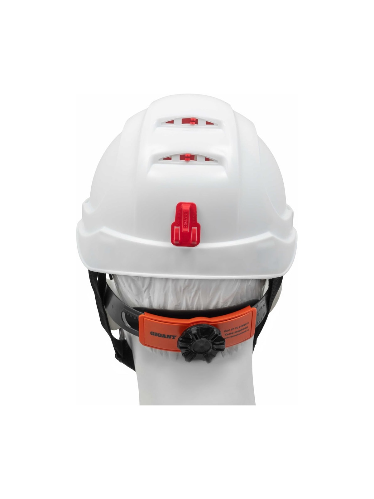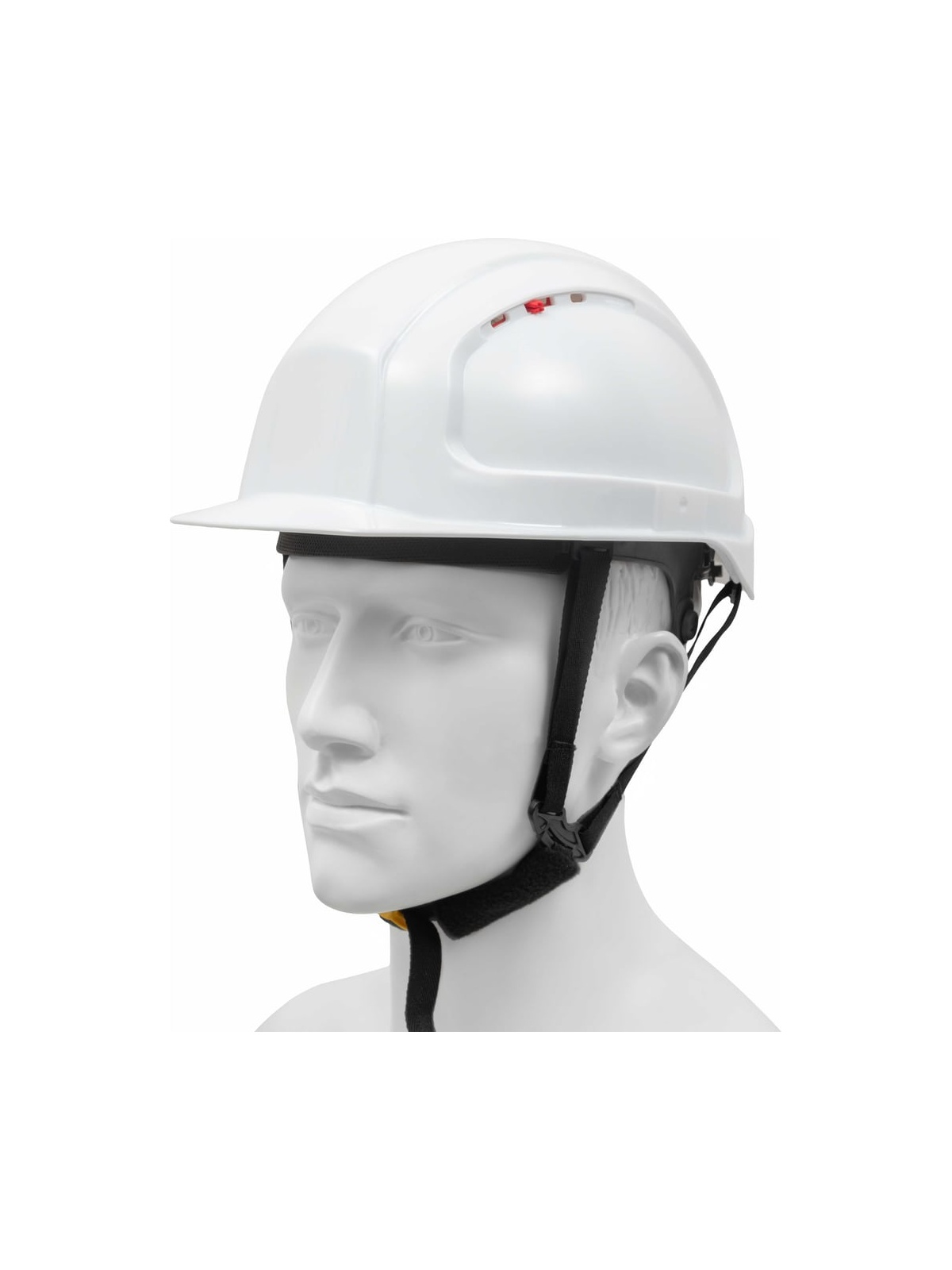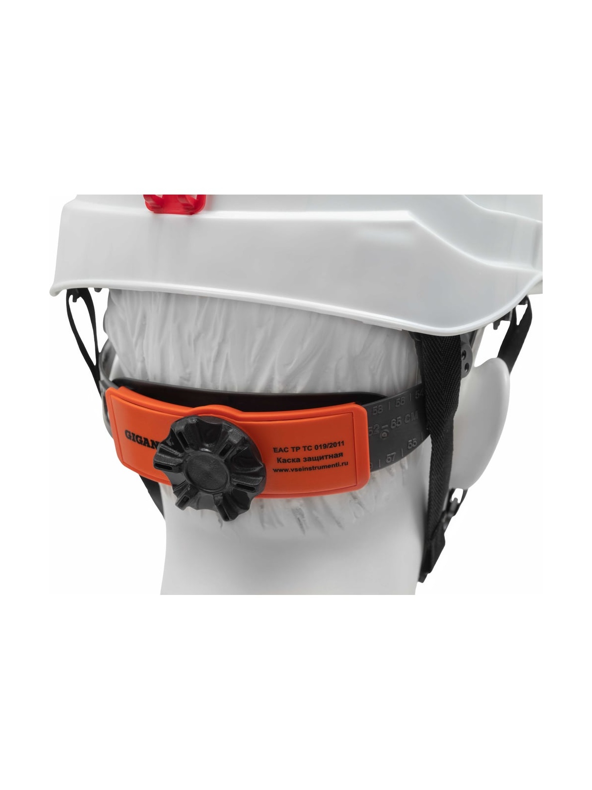 Защитная каска Gigant Zip белая храповая регулировка GHZ-22 защищает голову пользователя от повреждений падающими предметами, от воздействия влаги, брызг металла, химических веществ. Имеются пазы (слоты) для крепления наушников и щитков, держатель SMART для фиксации наголовной ленты защитных закрытых очков. Корпус каски изготовлен из полиэтилена низкого давления с несмываемой маркировкой защитных свойств на козырьке каски Имеется двойное ребро жёсткости и увеличенная защита затылочной части Вентиляционные отверстия регулируются заглушками, которые являются УФ-индикаторами старения Внутренняя оснастка с текстильными амортизационными лентами крепится к корпусу в 8-ми точках Шесть ступней регулировки высоты ношения Регулировка по размеру головы осуществляется плавно храповым механизмом RAPID Cменная мягкая налобная лента (обтюратор) из триплированного материала Подбородочный ремень позволяет надежно фиксировать каску на голове пользователя за счет 4-х точек крепления к корпусу каски и регулируется по длине при помощи пряжки.