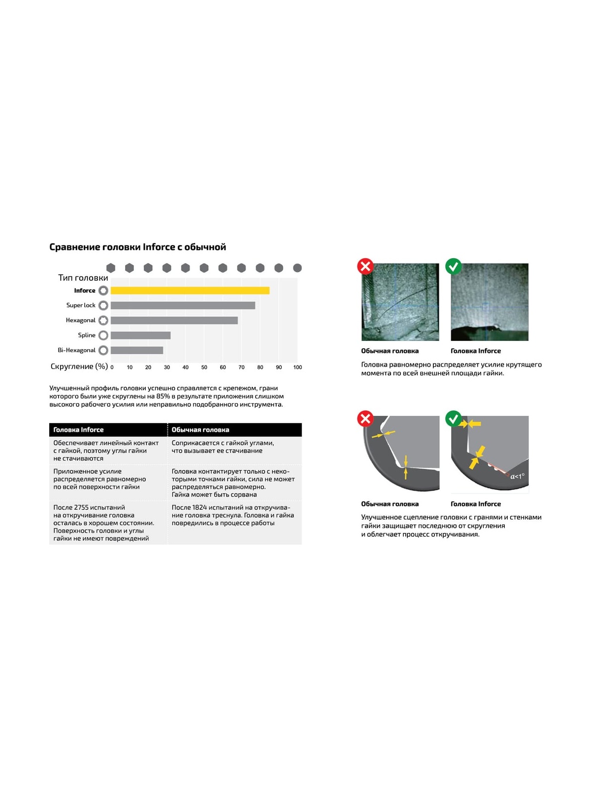 Головка торцевая шестигранная Inforce 11-01-487предназначенадля работы с крепежом. Оснастка изготовлена из хром-ванадиевой стали. Улучшенный профиль головки успешно справляется с крепежом, грани которого деформированы на 85%.