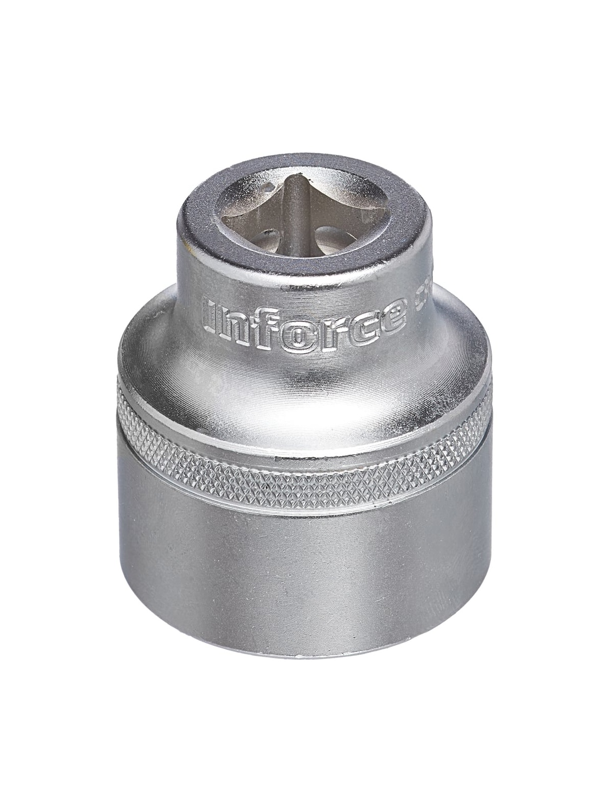 Головка торцевая шестигранная Inforce 11-01-488предназначенадля работы с крепежом. Оснастка изготовлена из хром-ванадиевой стали. Улучшенный профиль головки успешно справляется с крепежом, грани которого деформированы на 85%.