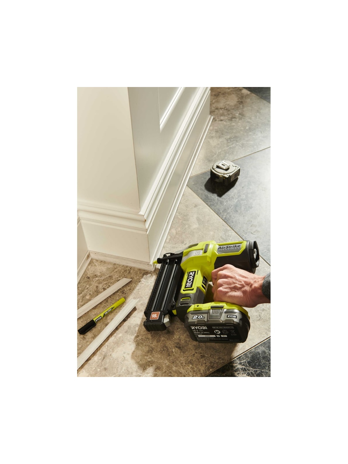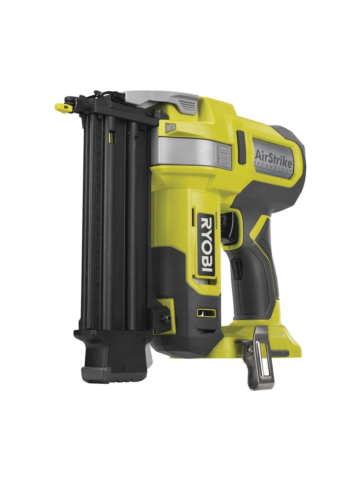 Гвоздезабиватель Ryobi R18GN18-0 ONE+ 5133005136 забивает гвозди калибра 18G (1.2 мм) длиной от 15 до 50 мм. AirStrike технология обеспечивает комфортную работу без использования кабеля, компрессора, шлангов или газовых картриджей Бесключевая регулировка глубины забивания помогает предохранить поверхность материала от повреждения и при этом избежать выступающих шляпок гвоздей Функция предотвращения холостого выстрела увеличивает срок службы инструмента Конструкция магазина позволяет легко удалять замятые гвозди и загружать новые без использования дополнительных инструментов Grip-light технология позволяет включать светодиодную подсветку нажатием клавиши, расположенной на рукоятке Поясная клипса может устанавливаться и справа и слева исходя из удобства пользователя