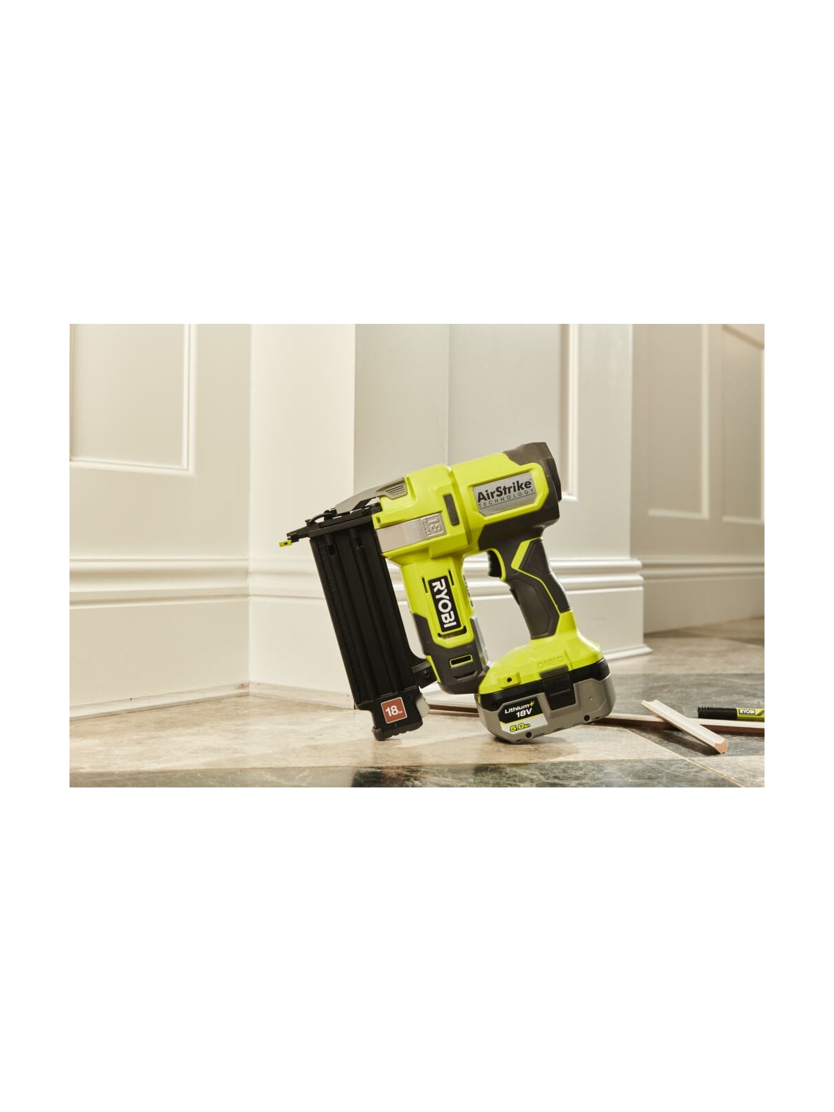 AirStrike™ технология обеспечивает комфортную работу без использования кабеля, компрессора, шлангов или газовых картриджей Забивает гвозди калибра 18GА ( 1.2 мм ) длиной от 15 до 50 мм Бесключевая регулировка глубины забивания помогает предохранить поверхность материала от повреждения и при этом избежать выступающих шляпок гвоздей Функция предотвращения холостого выстрела увеличивает срок службы инструмента Конструкция магазина позволяет легко удалять замятые гвозди и загружать новые без использования дополнительных инструментов Grip-light технология позволяет включать светодиодную подсветку нажатием клавиши, расположенной на рукоятке Поясная клипса может устанавливаться и справа и слева исходя из удобства пользователя