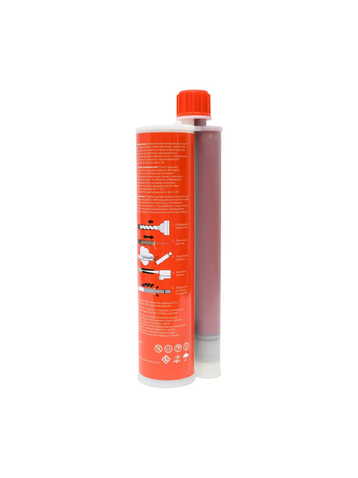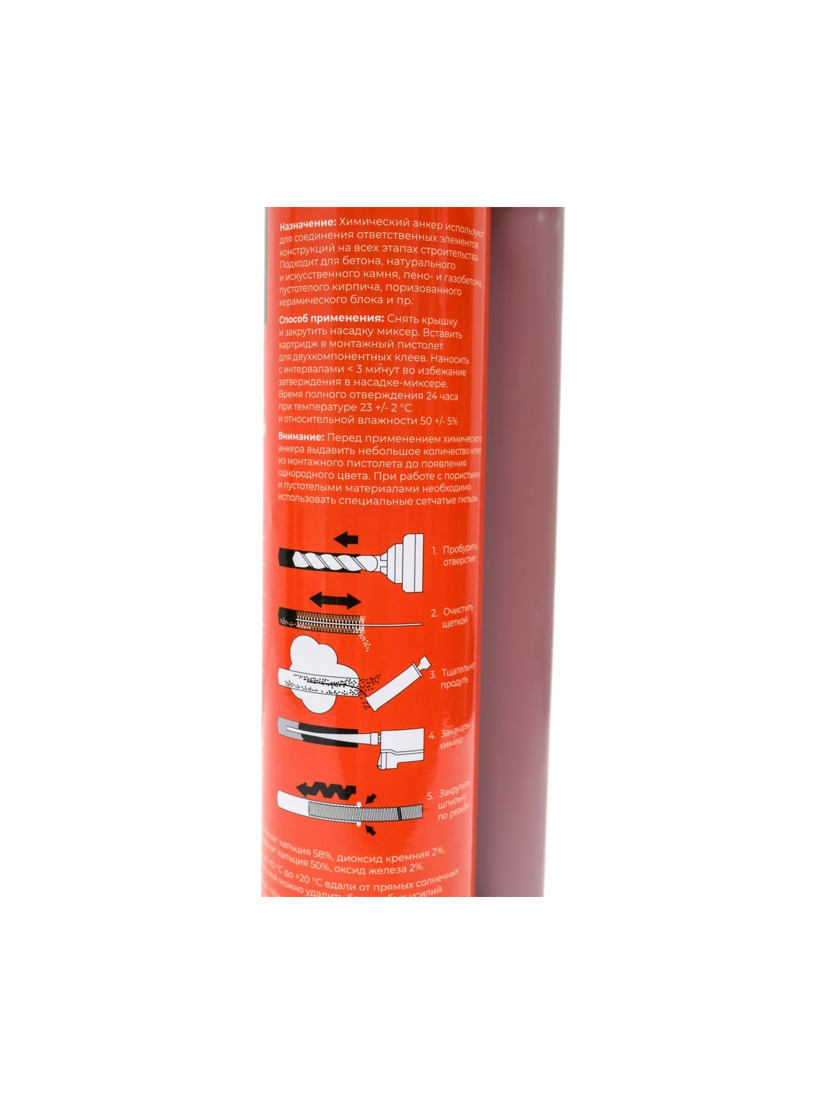 Химический эпоксидный анкер Gigant CHA2182 служит для профессиональной фиксации крепежа в твердые основания, такие как: бетон (в том числе растянутых зонах), натуральный и искусственный камень, пустотелый кирпич, газобетон. Продукт используют для крепления перил, стоек, поручней, ворот, оконных решеток, настенных шкафчиков, сантехнических приборов, систем воздушного кондиционирования, освещения и других элементов. Рекомендуется очистить отверстие от пыли перед закачкой химического состава. Может использоваться с пистолетами для двухкомпонентных анкеров различных производителей. Дополнительные характеристики: Время схватывания 50-60 минут. Коэффициент смешивания 5:1 Время полного отверждения 24 часа при температуре 23+/-20С и относительной влажности 50+/-5% Температура эксплуатации от -40 до +80 С Прочность на сдвиг (по ISO 4587) >16 МПа Прочность на вырыв >30 МПа Твёрдость (по Шору D) 70±2 Плотность 1.45±0.5 г/см3 Срок хранения: 1 год. Хранить при температуре от +10°С до +20°С вдали от прямых солнечных лучей и источников огня.