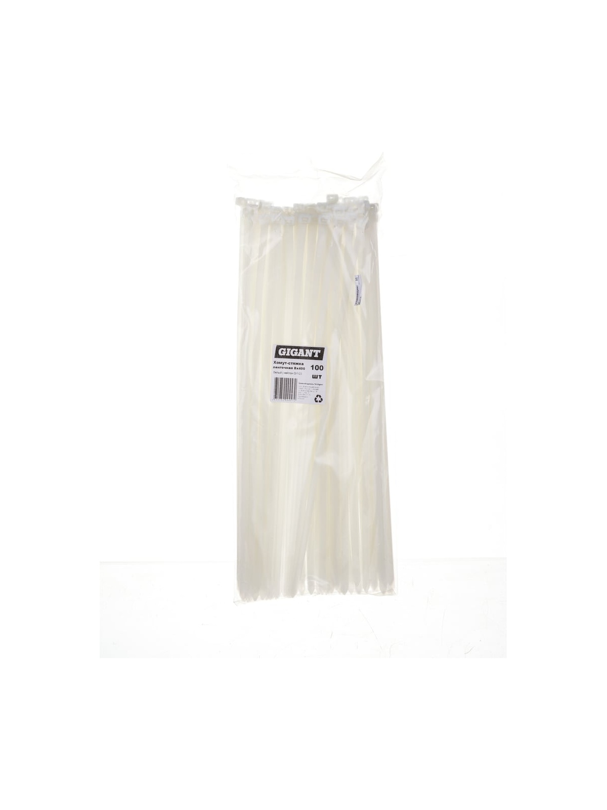 Ленточная хомут-стяжка Gigant 7,6х400 белый, 100 шт G/1/23 отлично справится со скреплением различных объектов. Выполнена из нейлона. Длина хомута составляет 400 мм, ширина - 7,6 мм, поставляется в наборе 100 штук. Простая конструкция удобна в использовании. Создает надежное и прочное крепление. Крепко фиксируется застежкой. Монтируются при температуре от 0 до +60 °С. Могут эксплуатироваться при температуре от -40 до +85 °С.