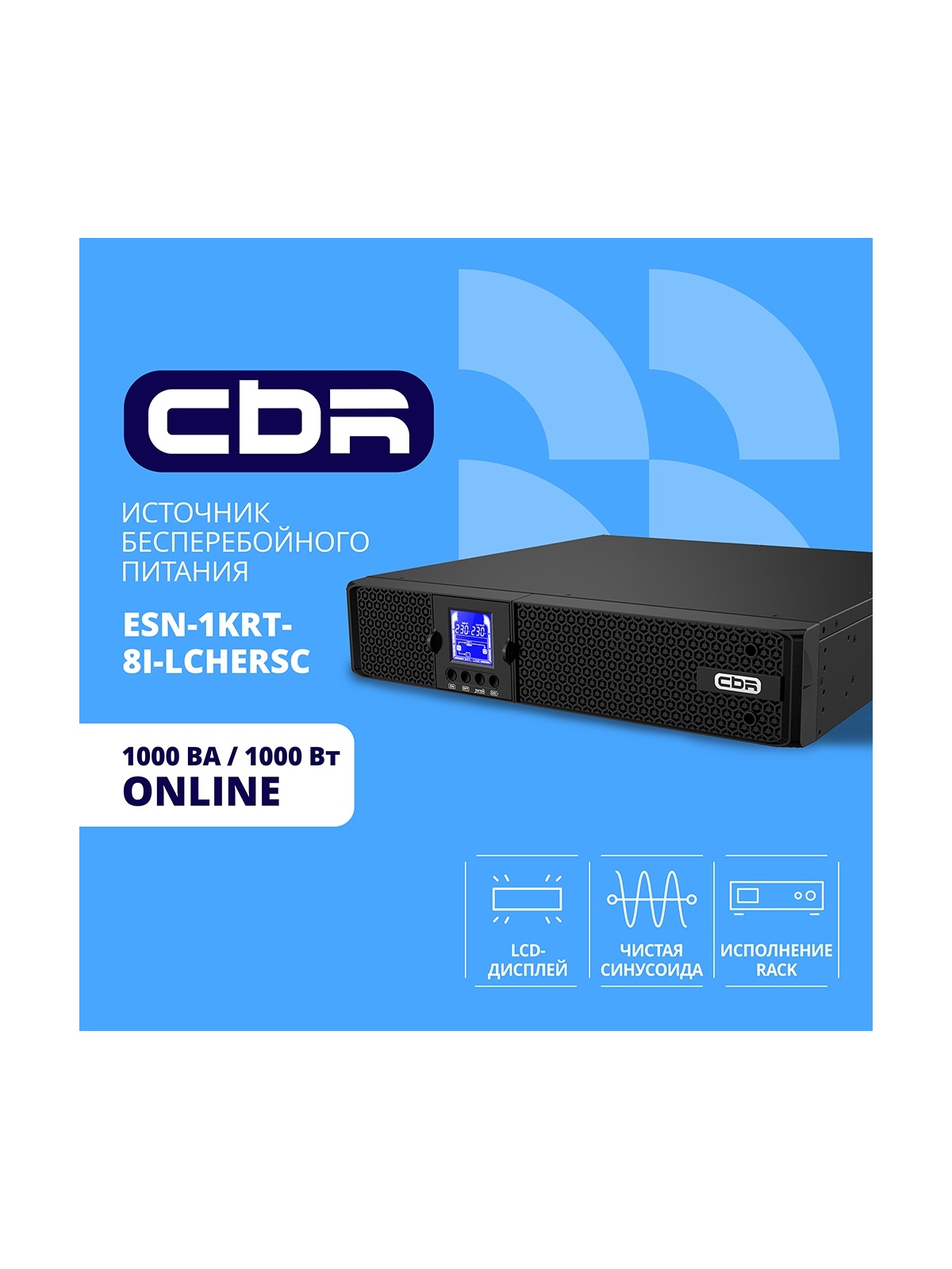 ИБП CBR ESSENCE ESN-1000 RT [Online 1000 VA / 1000 W, Rack/Tower, 8 x C13, LCD, HID-USB, RS232, EPO, SNMP slot]