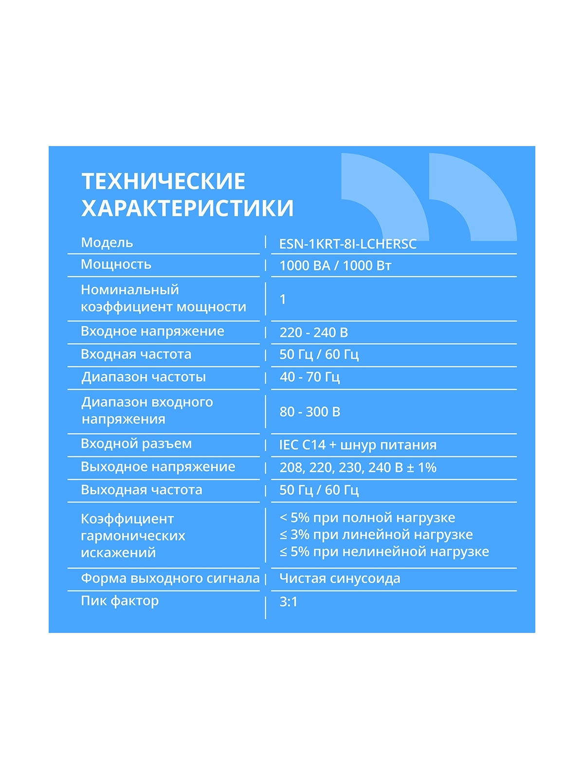 | Мощность устройства (ВА) | 1000 |