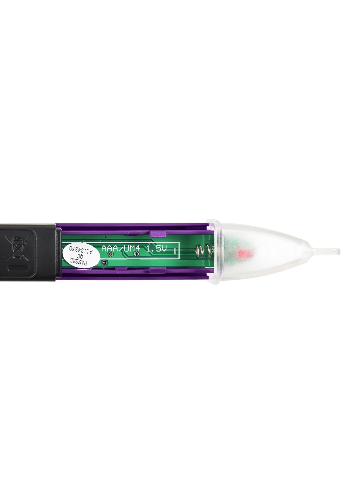 Для уведомления об обнаружении напряжения используется звуковой сигнал-зуммер и световой сигнал в виде красного мигания. Также на корпусе есть кнопка фонарика, по яркости света которого можно среди прочего определять уровень заряда батареек: если свет стал слишком тусклым, значит, их следует заменить. В приборе используются стандартные батарейки типа ААА.