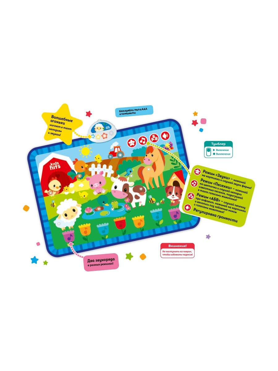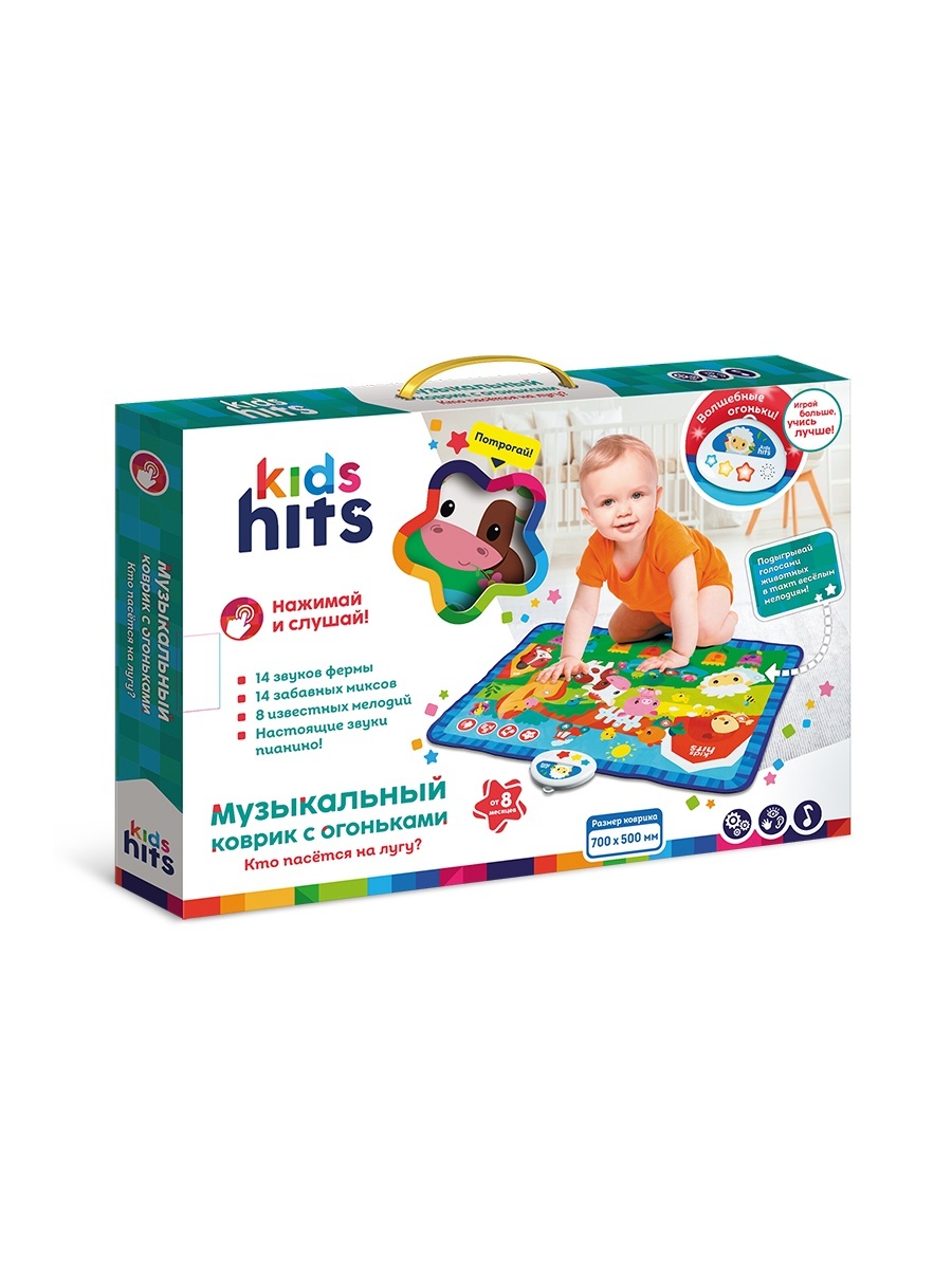 Интерактивная игрушка Kids Hits – это не просто музыкальный коврик, а волшебный мир, в который ваш ребенок сможет погрузиться с первых месяцев своей жизни. Коврик "Кто пасется на лугу" предназначен для детей от 8 месяцев и обеспечит увлекательные часы игры и обучения. Яркие огоньки и забавные звуки создают атмосферу радости и веселья, способствуя развитию всех органов чувств.