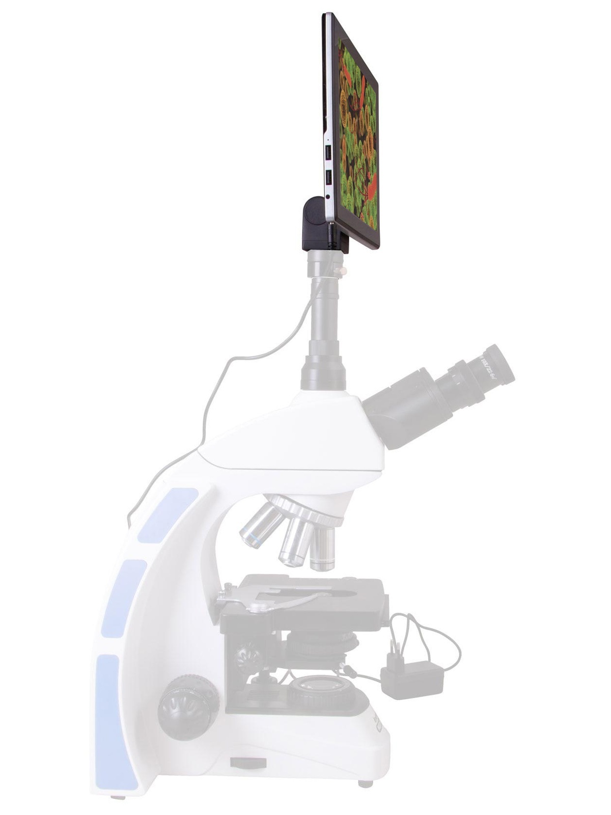 Перед вами цифровая камера с цветным сенсорным экраном, который работает на Android. По сути - это компьютер, который показывает изображение с объектива микроскопа, позволяет записывать видеоролики, снимать фотографии и сохранять их во внутренней памяти или на внешних носителях данных. И управлять этим компьютером можно всего одним касанием. Цифровая камера Levenhuk MED - это полноценная система визуализации, делающая работу в лаборатории наиболее продуктивной. Так как ход исследований показывается прямо на экране, нет нужды постоянно смотреть в окуляры - глаза смогут отдохнуть от непрерывной работы.