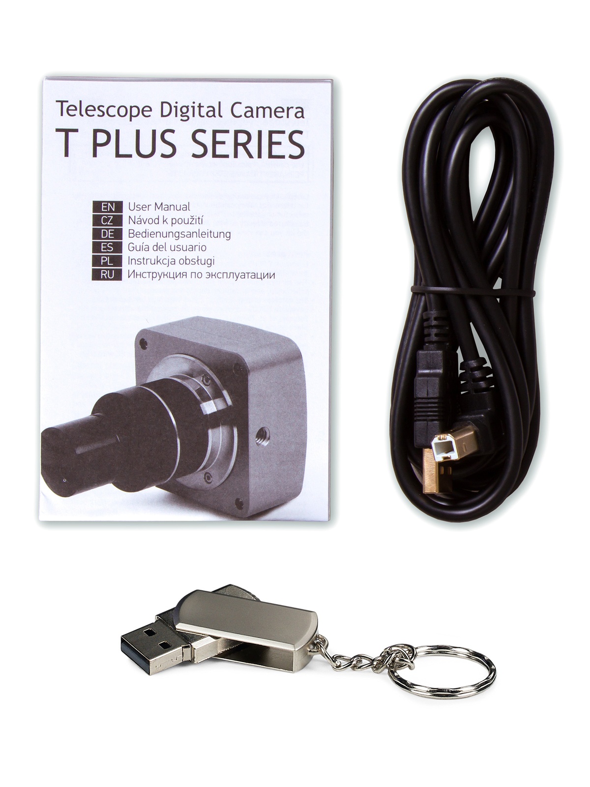 Камера устанавливается на телескоп вместо штатного окуляра и подключается к компьютеру через USB-кабель. Поддерживаемый интерфейс подключения – USB 2.0. Программное обеспечение для работы с камерой уже включено в комплект и поставляется на удобном флеш-носителе. Вывод изображения на экран, съемка фото и видео ведутся в разрешении Full HD (1920x1080 пикс).