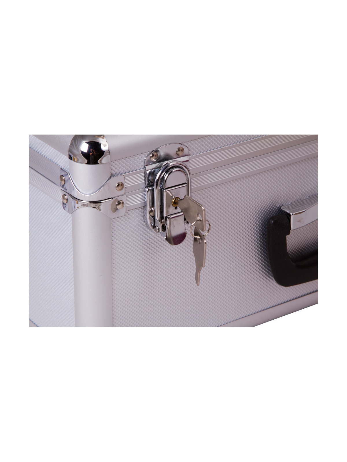 Кейс имеет ручку для переноски. Закрыть его можно на два замка. Ключи входят в комплект поставки.