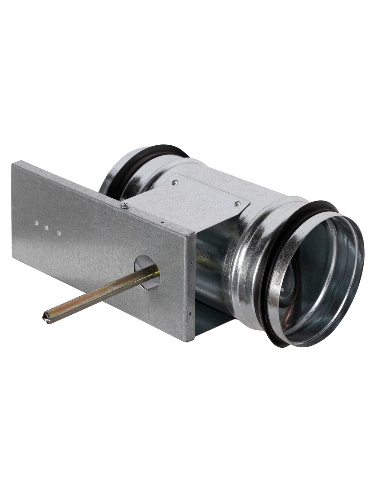 Воздушный клапан для круглых воздуховодов с резиновым уплотнением на запорных лопатках подготовлен для установки электропривода и предназначен для настройки расхода воздуха в канале, для регулирования и наладки систем вентиляции, для перекрытия воздушных каналов во время остановки работы системы вентиляции. Корпус и заслонка клапана изготовлены из оцинкованной стали. Клапан может устанавливаться в любом положении. Запорные лопатки оснащены резиновым уплотнением, повышающим степень герметичности в закрытом канале.
