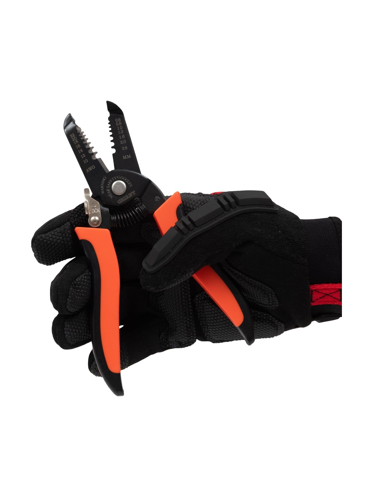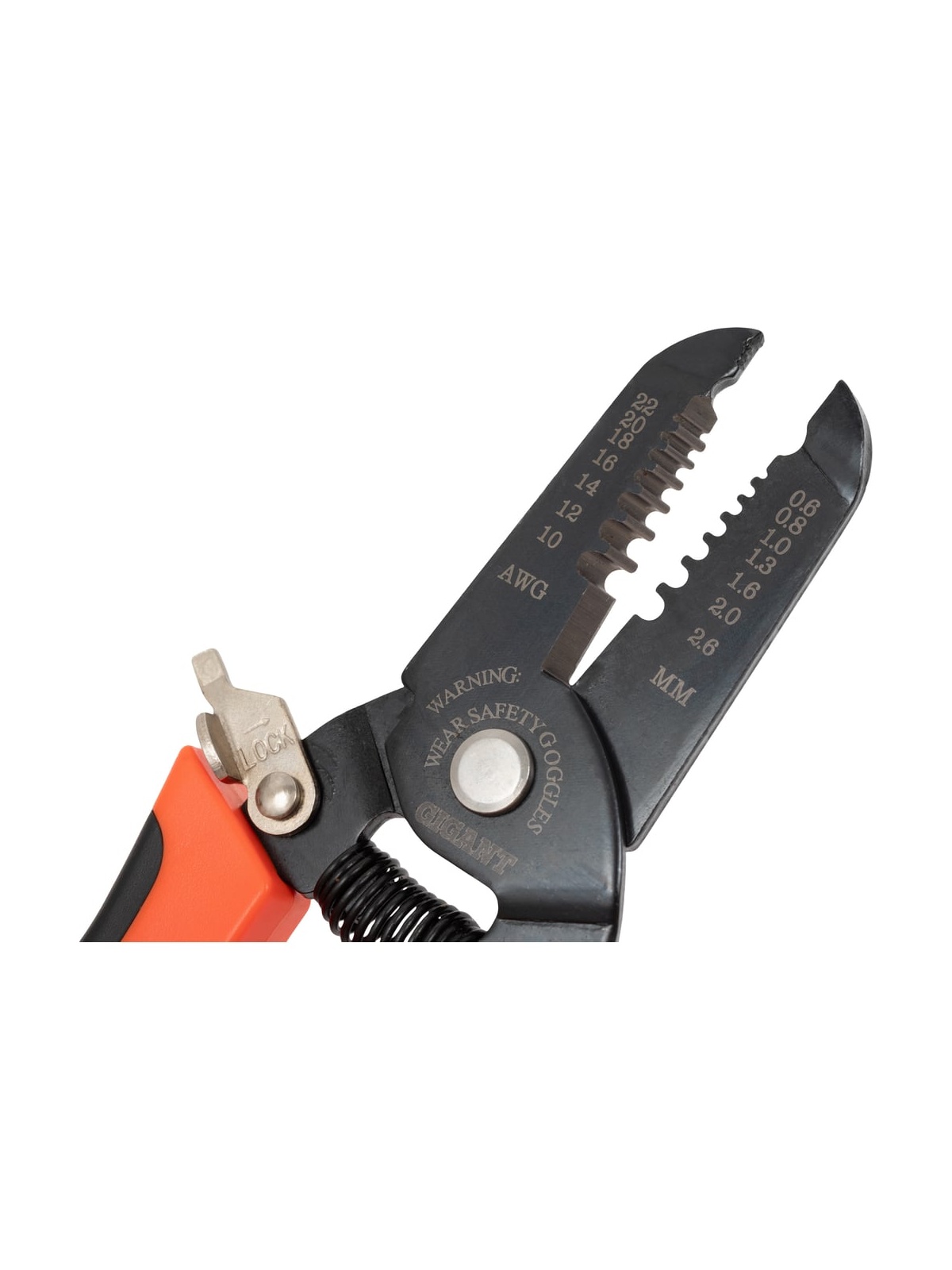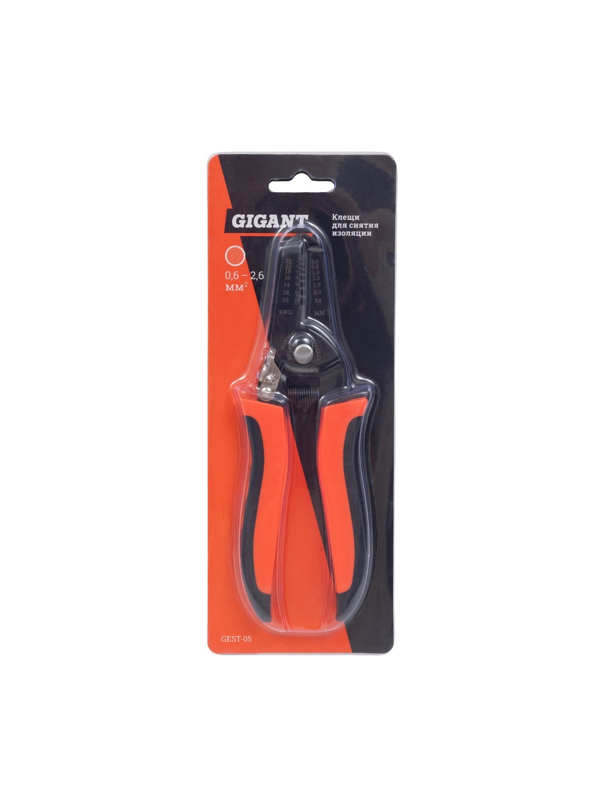 Клещи для снятия изоляции Gigant GEST-05 представляют собой удобный инструмент, при помощи которого можно быстро зачистить край провода под клеммы или иной вид соединения. Минимальный диаметр кабеля составляет 0,6 мм, максимальный - 2,6 мм. Наличие возвратной пружины позволяет развести губки в стороны после завершения операции. Регулировка диаметра реза позволяет работать с разными кабелями. Накладки на рукоятках обеспечивают надежное и удобное удержание инструмента.