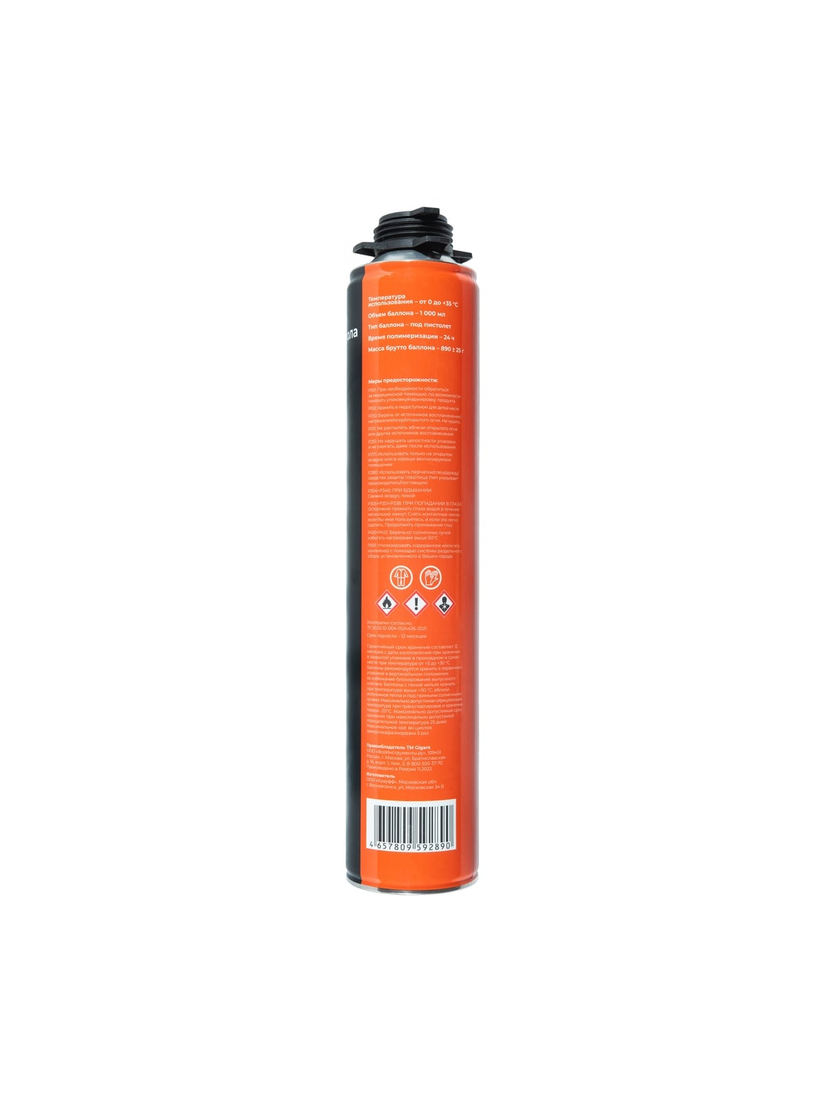 Клей-пена для пенополистирола Gigant GGFPS-1 обладает хорошей устойчивостью к влажности, плесени, старению, высокой адгезией к бетону, цементным штукатуркам и другим минеральным основаниям, а также к дереву, древесно-стружечным плитам, плитам OSB, мозаичной облицовке и т.д. Предназначена для крепления плит из пенополистирола и экструзионного пенополистирола к основанию при устройстве теплоизоляции внешних и внутренних стен здания, крыш, подвалов, фундаментов, полов как в новых, так и реконструируемых зданиях. Температурный режим хранения от 5 °С до 25 °С.