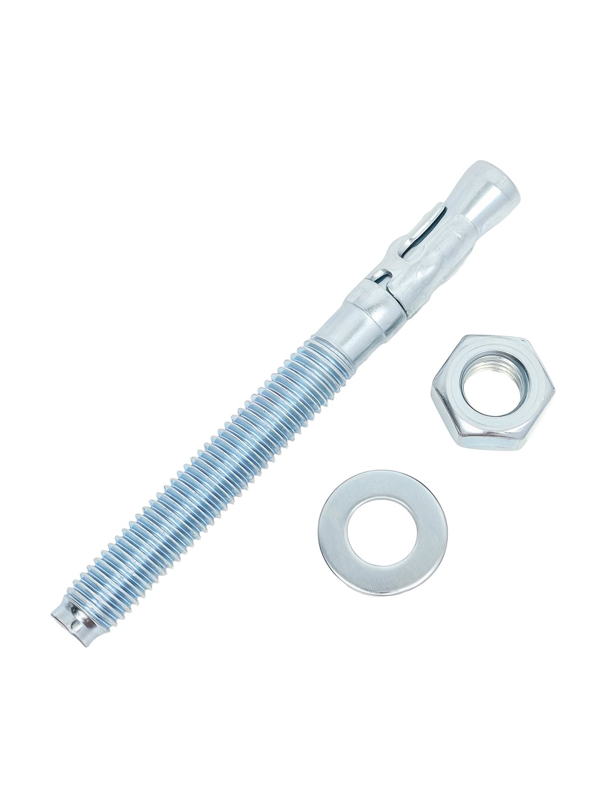 Клиновой анкер представляет собой крепежный элемент в виде шпильки с резьбой, на одном конце которой располагается шайба с гайкой, на другом - распорный узел с муфтой в форме конуса. Предназначен для крепления разнообразных конструкций к бетону, полнотелому кирпичу или природному камню. Отлично подходит для крепления металлоконструкций, кронштейнов, элементов ограждений, инженерных конструкций, консолей и так далее. К основным преимуществам клинового анкера относят: простой монтаж и высокая прочность соединений.