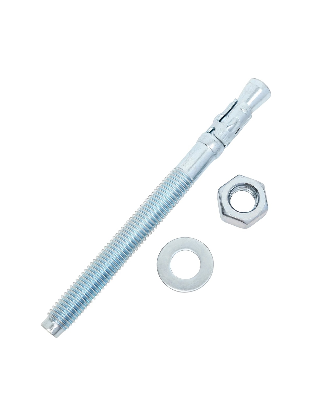 Клиновой анкер представляет собой крепежный элемент в виде шпильки с резьбой, на одном конце которой располагается шайба с гайкой, на другом - распорный узел с муфтой в форме конуса. Предназначен для крепления разнообразных конструкций к бетону, полнотелому кирпичу или природному камню. Отлично подходит для крепления металлоконструкций, кронштейнов, элементов ограждений, инженерных конструкций, консолей и так далее. К основным преимуществам клинового анкера относят: простой монтаж и высокая прочность соединений.
