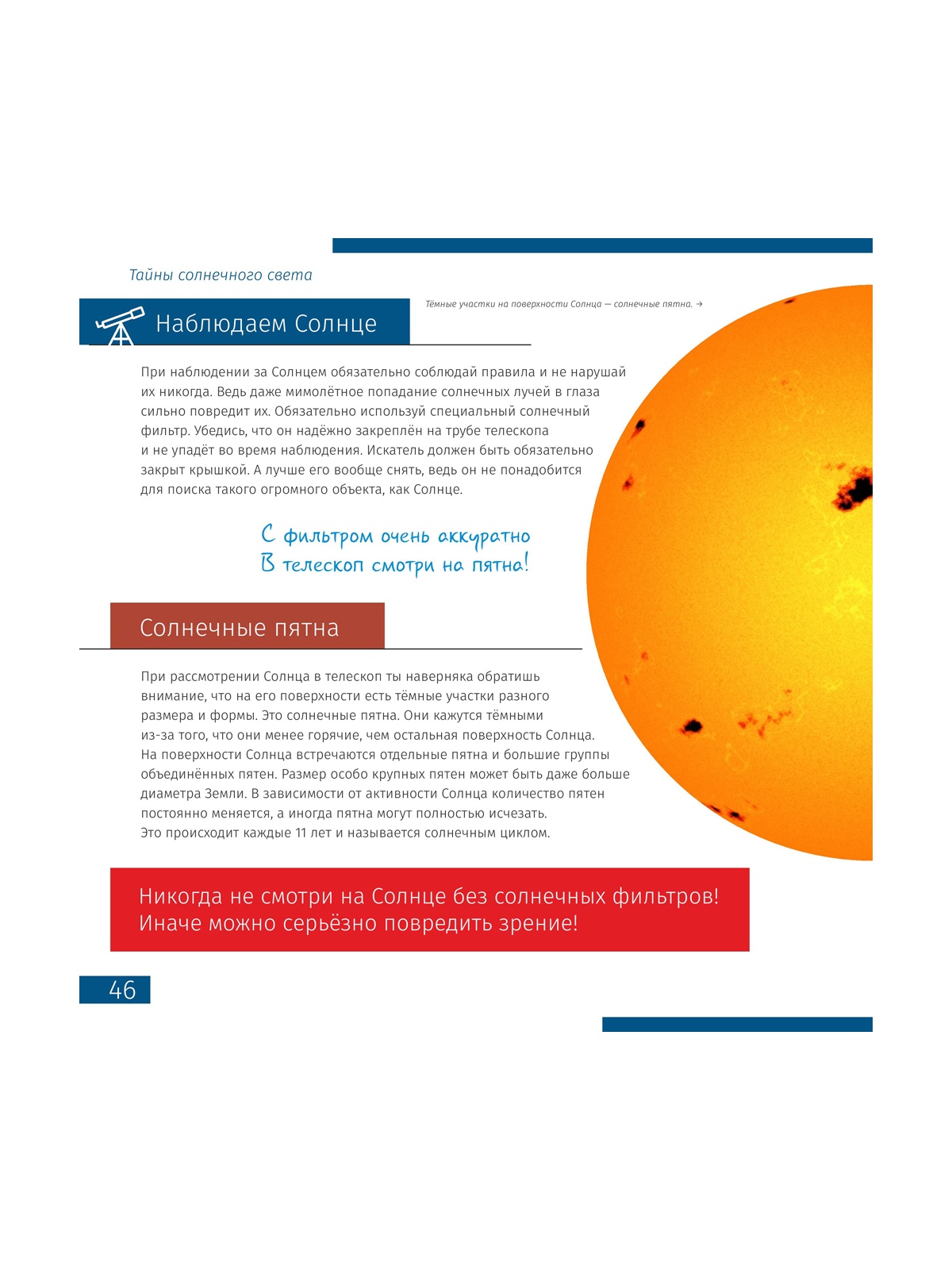 Книга предназначена для читателей старше 6 лет. Ее можно использовать как самостоятельное обучающее пособие или как полезный дополнительный учебник для школьных занятий астрономией. А если у ребенка есть телескоп, книга станет просто незаменимой: поможет быстро освоить управление и погрузиться в исследование космических красот.