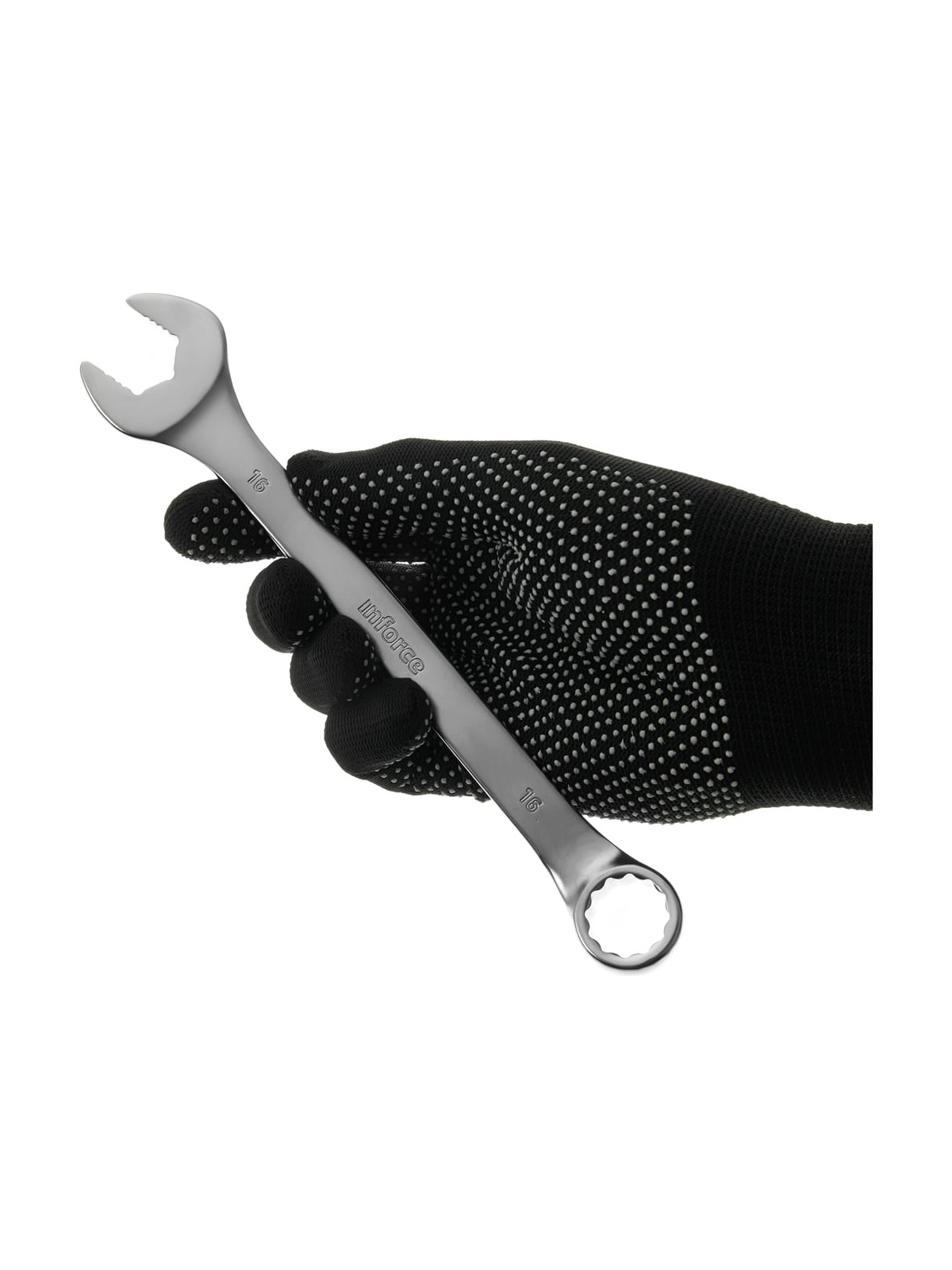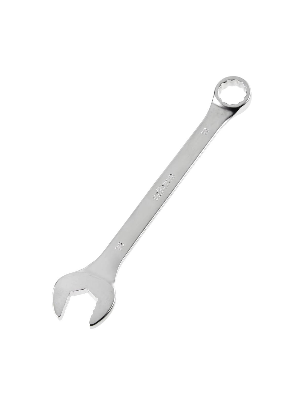 Комбинированный ключ 16 мм Inforce 06-05-18 удобен в использовании за счет хромированного слоя, который защищает изделие от коррозии. Рифленые губци цепляются за грани крепежа, что упрощает работу с шестигранными болтами и гайками. Выбрать другой размер.