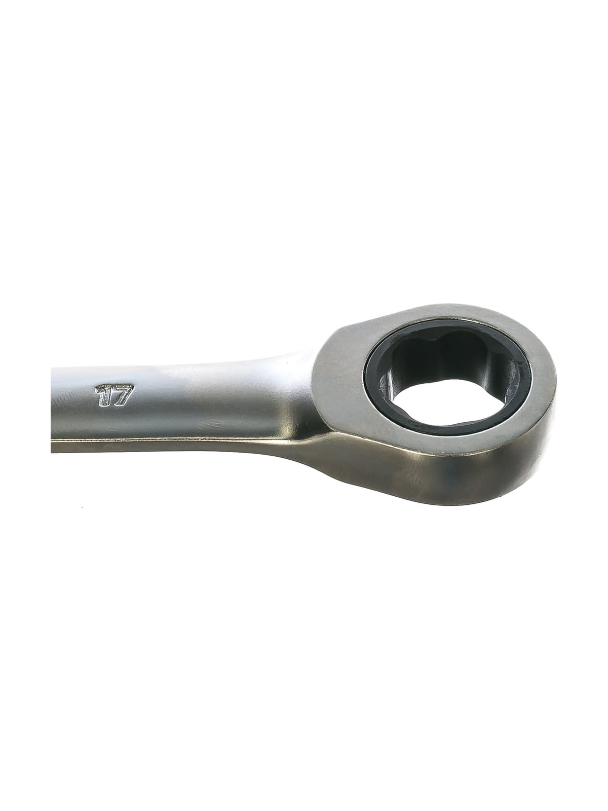 Комбинированный трещоточный ключ 17мм Inforce 06-05-83выполнен из прочной хромованадиевой стали. Сплав выдерживает значительное давление и воздействие коррозии. Одна головка выполнена с трещоткой, другая приспособлена для безопасного затягивания крепежа.